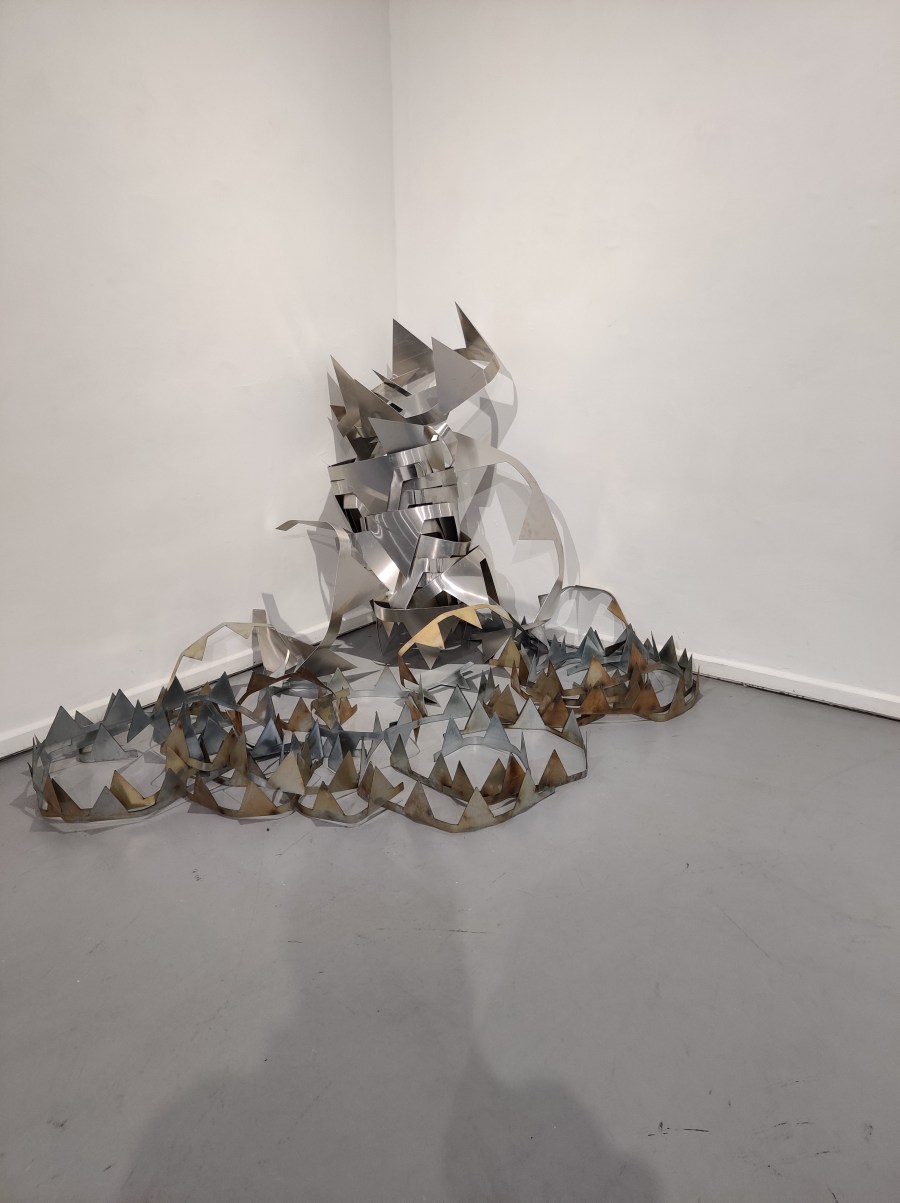 עשרות כתרים עשויים אלומיניום, פח וברזל מוצבים בתערוכה "כתר" של איציק בדש בחלל הגלריה בן שתי הקומות. כתרים בגדלים שונים, חלקם מתנשאים לגובהו של חלל הגלריה, מפעימים, מפתים את הצופה להתקרב עדיהם. הכתרים כמקבץ והכתר כיחיד, כפרט, כל אחד ואחד מהם הינו פרי עבודת יד עמלנית.[1] בטקסט התערוכה כותבת האוצרת פרופ' חביבה פדיה: "בדש בתערוכתו …