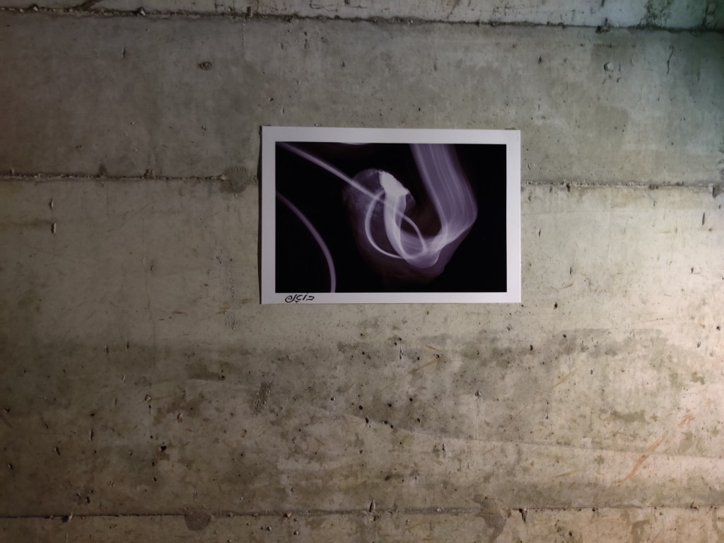 בתערוכה המוצגת על קירות המנהרה, חוברים להם הטבע, הלמות גלגלי המכוניות מעל והרבה אור. אור האופף את הבאים אל המנהרה ממול, והחושך האופף את הקירות. אור במשמעותו הרוחנית, אך גם הפיזית (לבאים למנהרה, מתבקש השימוש בפנס של הסלולר על-מנת להאיר את הצילומים המוצגים על קירות המנהרה).