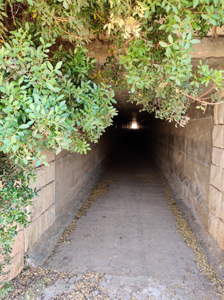 יוצאים מהשער ופונים בשביל שבאלכסון מימין, מספר דקות אל עבר חומת האבנים שתחת כביש שש. שם, מצד שמאל ניתן לראות את פתח המנהרה.