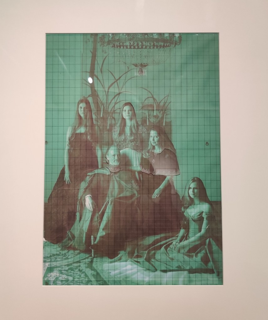 דיוקן משפחתי זה הינו תמצית 'עולם קטן'. דמות האב כ"Omnipotence" ככל יכול, יושב בלבוש מלכותי – בצבעי אדום וכחול (צבעי מלכות – שמים ואדמה כאחד! וגם צבעי הלבוש של המדונה, אמו של ישו) ומוקף בסמלי סטטוס, כמעין כרטיס ביקור המוצג לעולם החיצוני. היחסים בין הדמויות: האם היוצרת קשר עין עם הצופים, מבטה מלוכסן, הבנות המשירות מבט. ואפרופו דיוקן בגוף מלא לפי הכללים הרנסנסיים/ברוקיים ובעיקר אלה קודם המצאת המצלמה עלותו היתה גבוהה ביותר למזמין!