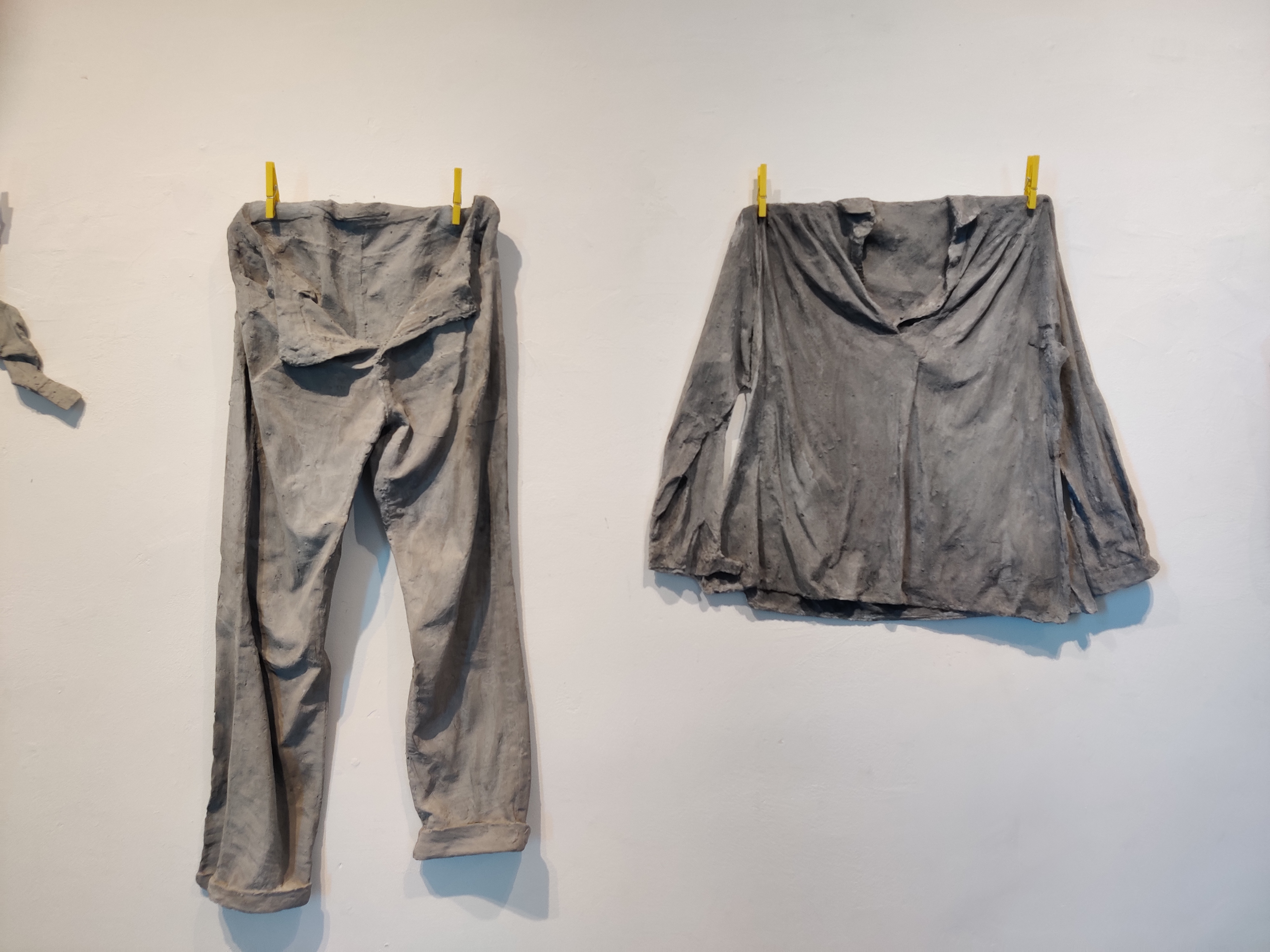 ובקומה התחתונה – בציר הסירקולציה – אילנה אביב . בגדי העבודה שלה, ביציקות בטון אקולוגי מוצגים על הקיר. וכפי שציינה "בתליית בגדי העבודה על חבל כביסה יש הסכמה לעצור, להפסיק את המאבק עם המציאות של הסטודיו". הסכמה לנוח!