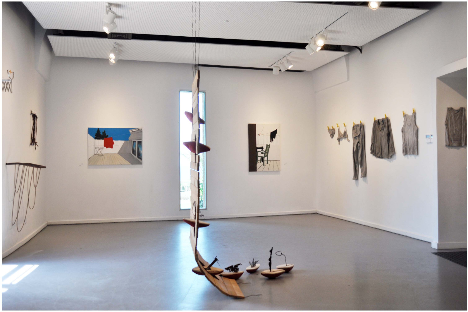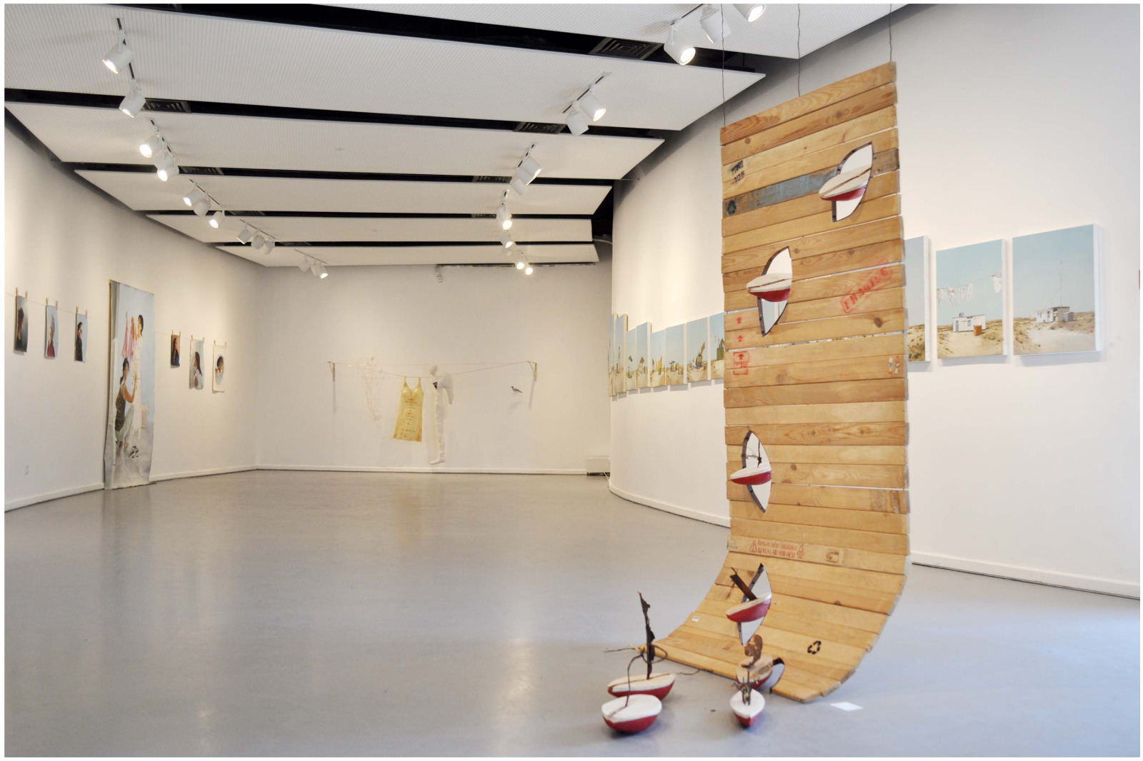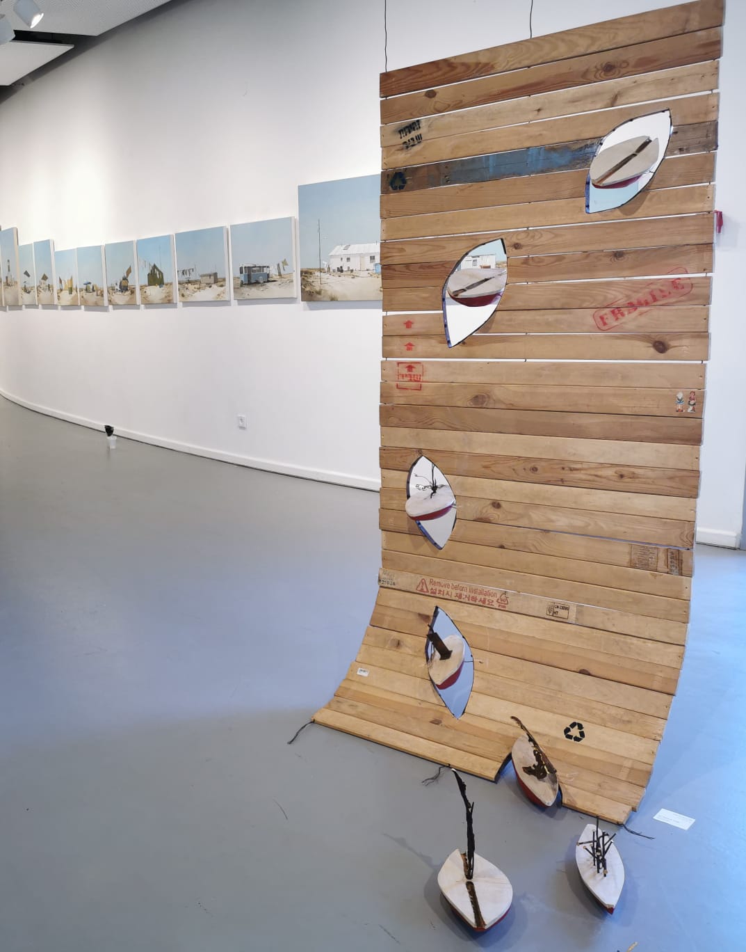 אתי גדיש דה לנגה מפסלת בעץ, מתכת בשילוב של חומרים נוספים, הסירות של אתי המהוות מוטיב מרכזי בעבודתה כמו תלויות על חבל כביסה ניבטות שקופות לעולם. והן גם שקופות למבט שלנו ולמראה העבודות של אסף שני התלויות על הקיר ומנהלות שיח עמן.