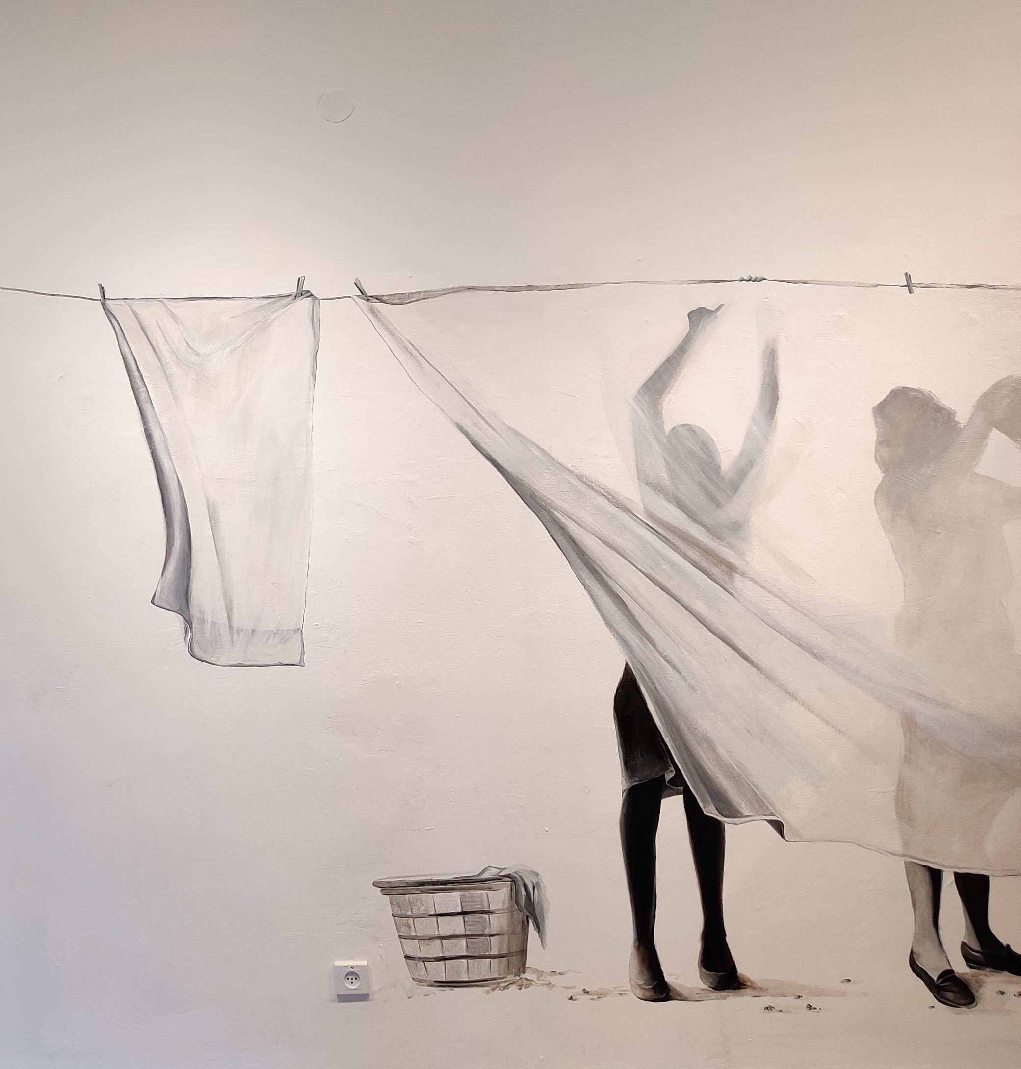 ציורי כובסות (לרוב נשים…) וציורים המציגים את תוצר הכביסה – כביסה מתנופפת על חבלי הכביסה אינם חדשים – ניתן למצוא אותם באמנות ההולנדית בת המאה ה-17 ואף קודם לכן, והם רווחים אצל אמנים כאדגר דגה, אוגוסט רנואר, קמי פיסארו ואחרים, הן בחלל הביתי והן ליד מקורות מקים,