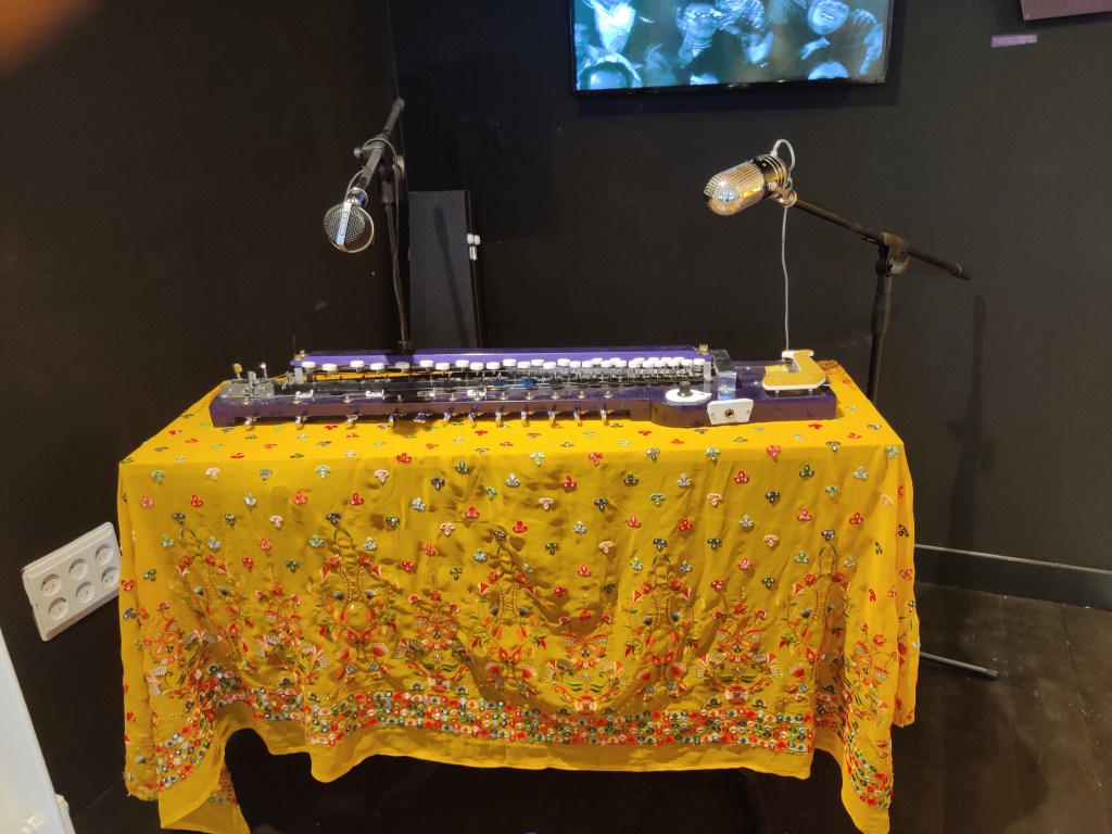 בתערוכה מוצגים פריטים אותנטיים וביניהם 'העוד' ששימש ככלי נגינה לעוזרי.