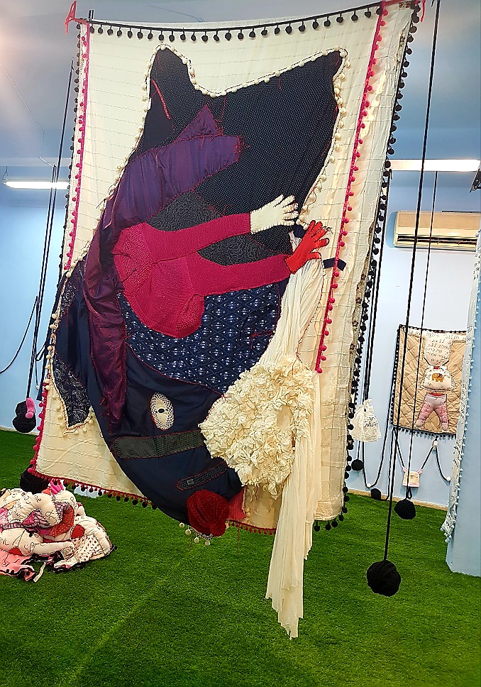 עשייה זו של חיבור הבדים והרקמות שדורשת אורך רוח, היא בעצם ניסיון ל"תיקון" וריפוי של "החור" המטפורי שנפער בנפש. הבדים הרכים, העוטפים ומגנים ומהווים מרכיב משמעותי בתערוכה, יכולים גם לשמש כשמיכה עוטפת, מנחמת ומכילה, תזכורת לאם שנוכחותה נמנעה בילדות.