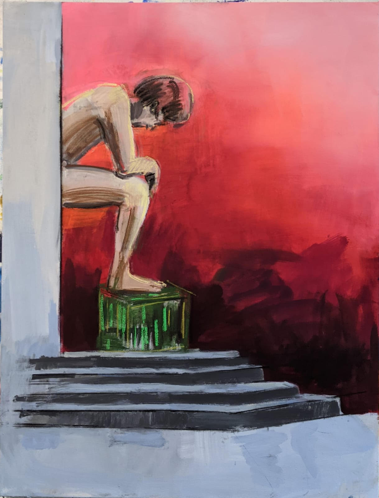 בטקסט יפהפה המנסה לגשר בין זמנים ומקומות, בין הבנלי לאידיאה ובין סגנונות ומהפכים, בין מה שהיה מיתי והפך לאישי, למעין בבואה של האמן המצייר, שגופו נושא עמו את סימני הזמן ותלאותיו. "זה ארבעים וחמש שנה הוא חותר במים האינסופיים. חיים שלמים הוא חותר – בלילות הקרים, בסערות, בימים הלוהטים בשמש היוקדת – וחוף אין באופק הנראה לעין. הניסיון המצטבר מותיר בידיו שאלות ותהיות רבות יותר, אך חכמת ליבו דוחקת בו להמשיך לחתור עוד שעל, עד האופל האפרפר".