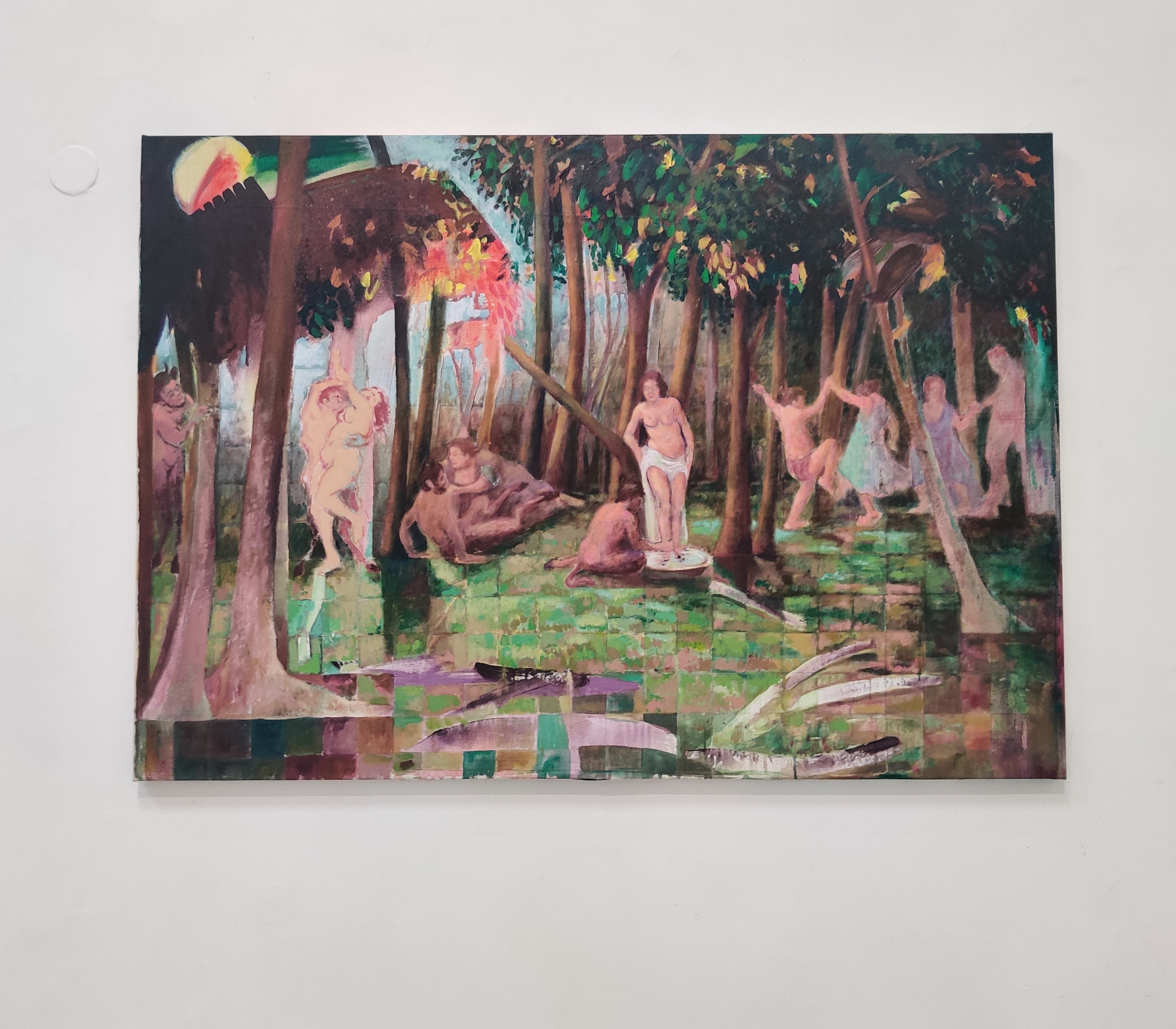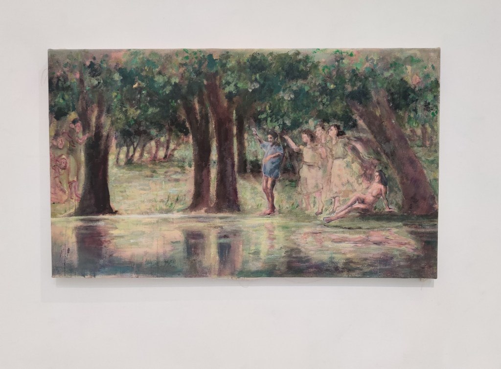 והחלק השני, ההדוניסטי, המעביר אותנו אל מחוזות דיוניסים, לדימויים השאולים ומתכתבים עם יצירות מן העבר, יצירות רנסנסיות בעיקר, בקחנליות, המשלבות יצר ורוח כאחד, נימפות וסטירים, במה שלי מזכיר את התפיסה הניאופלטוניסטית (של פלטוניוס) שרווחה בחצר המדיצי' בפירנצה במאה ה-15.