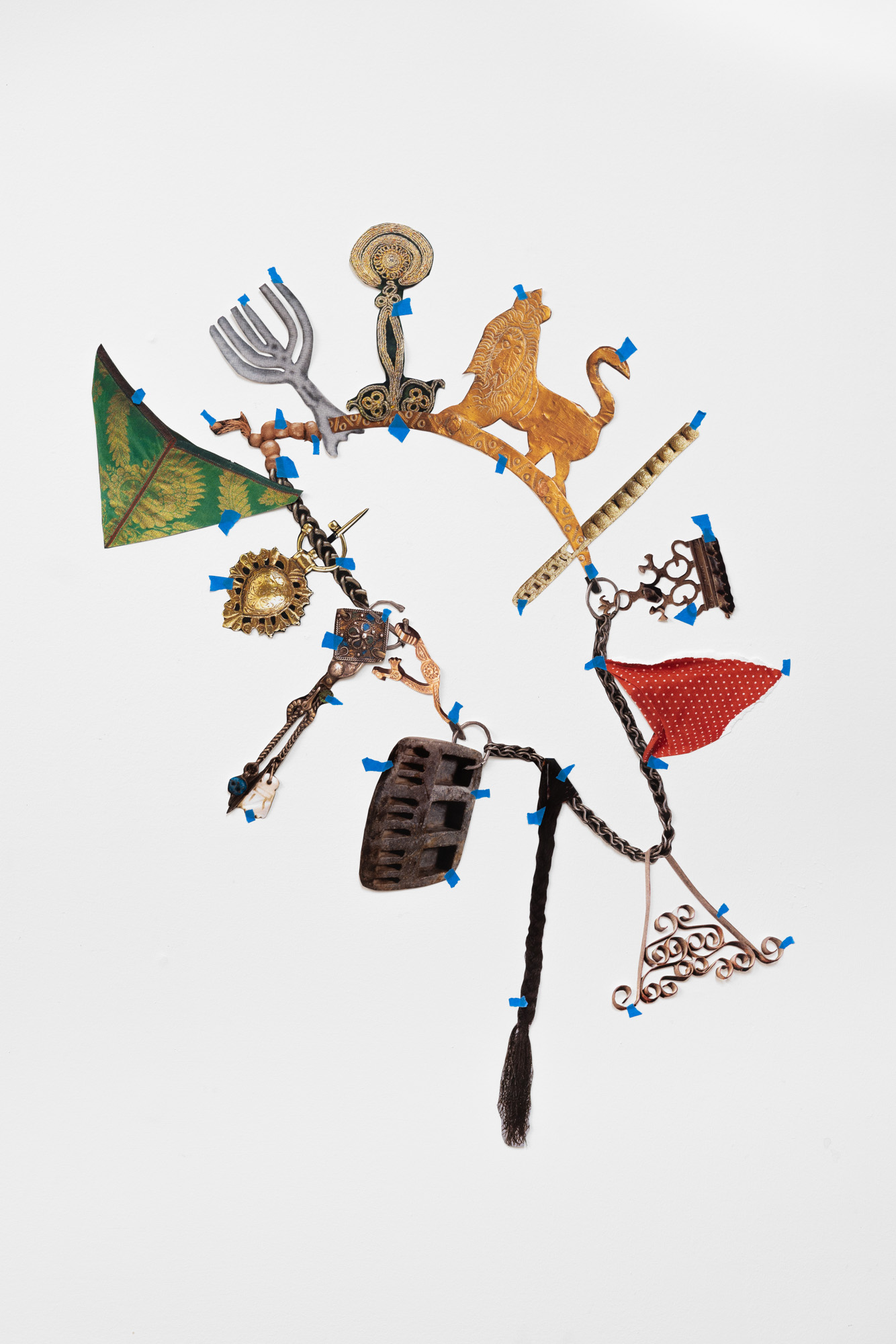 במקביל לשימוש בחומר היסטורי צילומי ולצילום הישיר, יצרה חכימי קולאז' של קמע לפריון ולמניעת הפלות. הקמע, שורשיו במרוקו, בה נשים יצרו לעצמן קמעות להגנה מהפלה, ואותם היו תולות במרחב הביתי. הקמעות הורכבו מחפצים יומיומיים שהחיבור ביניהם, כך האמינו, יוצר כוח מאגי מגן. חכימי מרכיבה את הקמע שלה מקולאז' של דימויים מצולמים שונים כמו: פיסות בד, חרוזים, פנינים, חלקים של תשמישי קדושה ושל תכשיטי זהב וכסף, ועוד. הקמע הדו-ממדי שהיא יוצרת שומר בו בזמן על האיכות מעין אסמבלאז׳ שהיא מזהה בקמעות ממרוקו, שהורכבו מאובייקטים ממשיים, ובהם נשזרו החפצים יחד בחוט שנראה כי נפרם מאריג כלשהו, מנגד, בקמע־קולאז׳ של חכימי, גזרי התצלומים מודבקים בנייר דבק כחול, רגע לפני פעולת הצילום המאחדת אותם יחדיו.