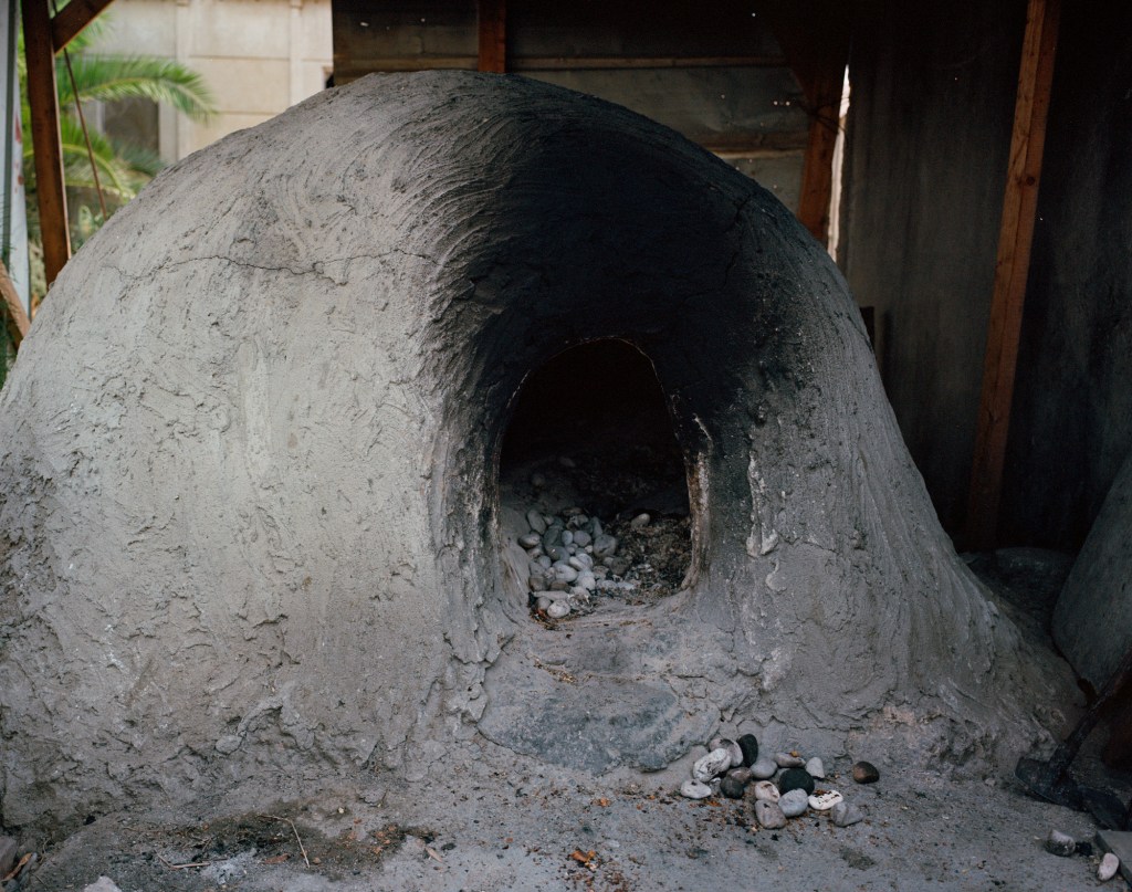 פְרֵנָה צילום שצילמה בשוקדה, מושב בנגב שהוקם ב־1957 על ידי עולים מאזור האטלס הגבוה במרוקו. הפְרֵנָה, תנור עשוי בוץ שממוקם מחוץ לבית, שימש בעיקר לאפיית לחם, ובמקביל שימש כנקודת מפגש של נשות הכפר. תנור כזה היה גם בחצר ביתה של סבתה של חכימי בשוקדה. חכימי מצלמת את הפרנה באופן ישיר, ומציגה אותו בהגדלה ניכרת על טפט.