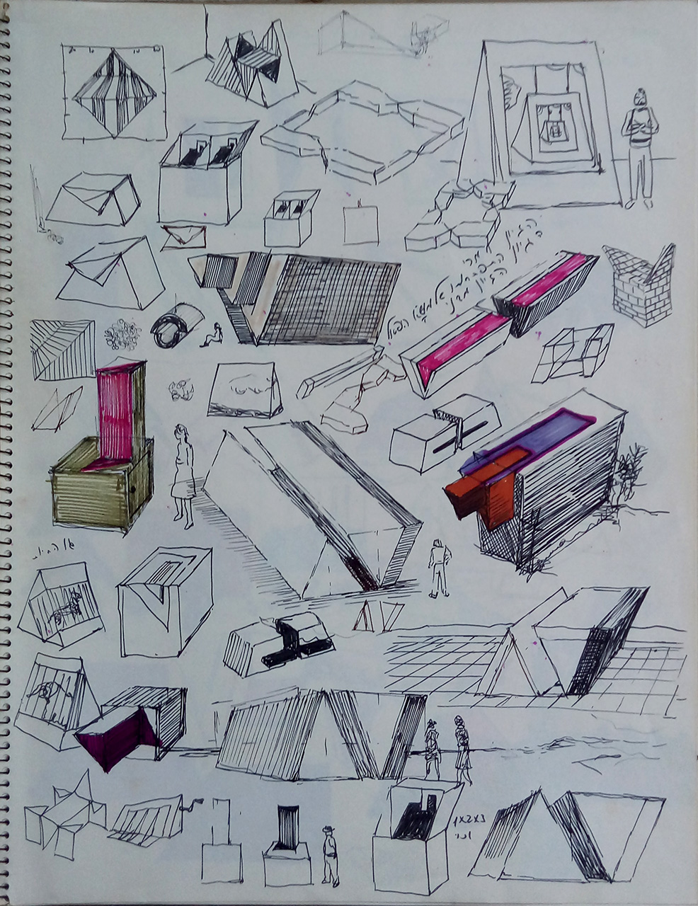 [4] אלן גינתון, "אהוד פקר: הגדרת פירמידה" הגדרות ומצבים בין הפשוט לנשגב עבודות משנות ה-70, מוזיאון תל אביב לאמנות, 2014, עמ' 4.