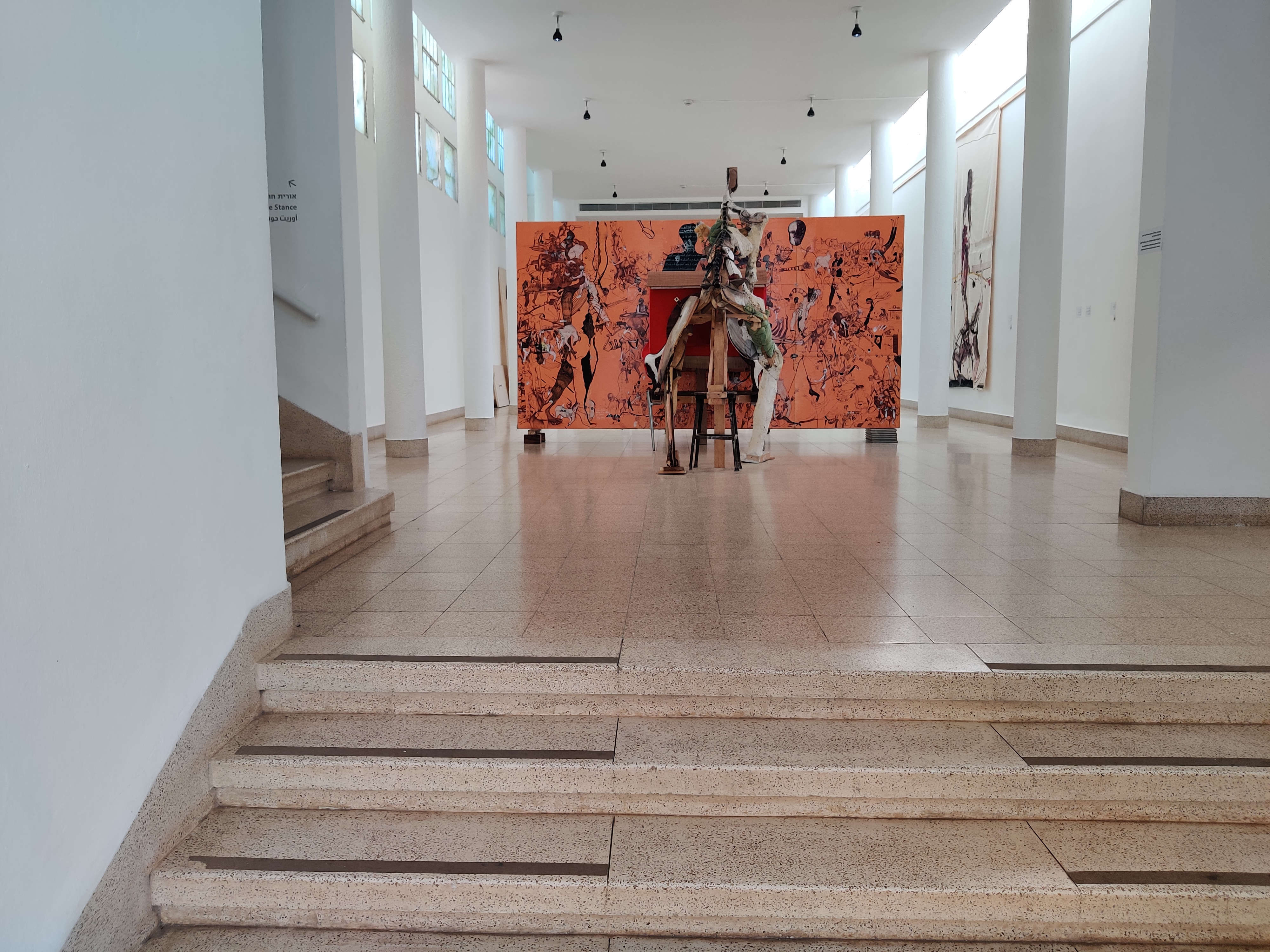 מצב תודעה אישי שעניינו קיום והישרדות עומד בלב ליבה של התערוכה "יציבה רעועה" של אורית חופשי. העבודות בתערוכה, חלקן מהדהדות לכתב היד של חופשי, לדמויות המסתכלות על הצופה, יוצרות קשר עין, בצד ההתייחסות למצב מורבידי, כולל האזכור למגדל שמירה? ולצבעי העבודות – שחור, אדום ועץ טבעי – המעלים על הדעת ייצוגים של בנייה וכליה, חורבן וצמיחה מחדש. חומרי העבודה – לוחות עץ החתוכים, גיליונות הנייר הגדולים והאבנים מכים בעין הצופה, באשר למשמעות ההסתגרות והחרדה, והפחד מהלא נודע והלא מוכר שחוו חלק ניכר מהחיים בעולמנו, ומשמשים ליצירת רצף אסוציאציות הנע בין ממשי ומטאפורי, בין אדם וטבע, בין טבע ותרבות.