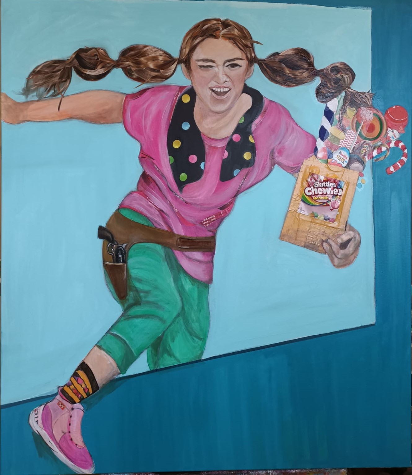 אורית הלפרן מציגה בציוריה מקבץ דמויות נשיות, במודעות לאפשרות שמשהו עשוי להתפרק, להשתנות המבט רפלקטיבי לעצמה ולהוויה הנשית בכללותה, כמעין מסע. העבודות נוגעות וקורצות לקומיקס, גרוטסקה וריאליזם מופשט.