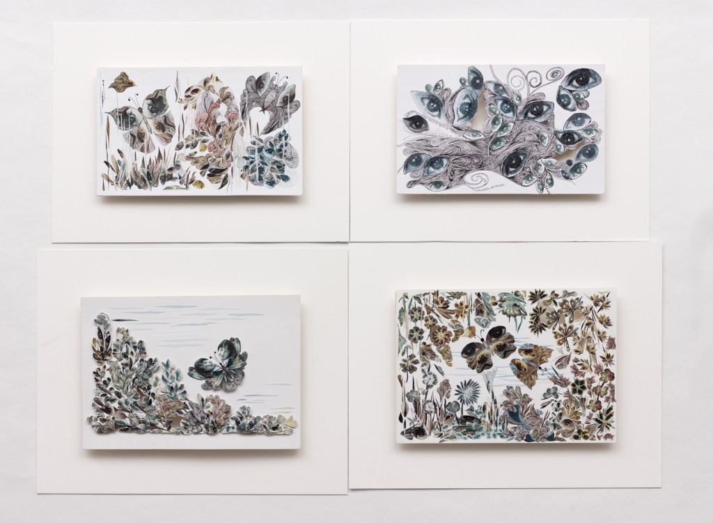 בצד רצונו/ה של כל יוצר ויוצרת למצוא את השפה האישית הייחודית שלהם, עולות נקודות השקה והצטלבויות מבעד לעבודות המוצגות בתערוכה – קשרי גומלין בין יצירות המגיבות לסוגות משמעותיות כגון זיכרון אישי וזיכרון קולקטיבי. זיכרונות אישיים הגלומים בחפצים, בתך ובתפר, באזכורים להורים ובני משפחה, היסטוריה אישית המצטלבת בזו הלאומית – שואה, עליה, העפלה. מקומו של הספר בתרבות והפער בין החומר הניירי, העונה לחוש המישוש, לעומת זה הדיגיטלי, והדהוד לחומרי ארכיב (מפות שולחן מצוירות, שנערמו כמסמכים בארכיון, אזכור לזיכרונות משפחתיים חגיגיים) מטמורפוזה של חפצים – קליעה בחוטי אורן בסל שנדמה לכד; התחרה שמשנה את פניה, עבודת הטפסטרי בה ניכרת החתירה תחת רעיון האריגה המסורתית והשתי והערב. בריאה ויצירה מחדש באמצעות נייר אפיה משומש. שימוש בשאריות שקיות ניילון; בשקיות תה חלוטות, בקרטון משומש שמקבל מהות אחרת. תעתוע העין, האשליה – trompe l'oeil הניכר בחלק מהעבודות ומפתה להתקרב ולגעת. סמלים לאומיים שמקבלים גוון של סמל אישי, אך גם כסמל לאידיאולוגיה וקהילה. ביוגרפיות אישיות המצטלבות בעיסוק בטראומה – זיכרון אישי הנוגע באבדן, בהתעמרויות והמענה של היצירה כמרפא וכבעלת גוון שמאני לריפוי פצעי ילדות והווה… רוח הזמן באשר לתו הירוק כמייצג התקופה וגילוי והסתר הפנים במסכת הגנה העשויה מחרוזי זכוכית. אינטראקציה בין יד, עין וחומר, ומהו זמן…