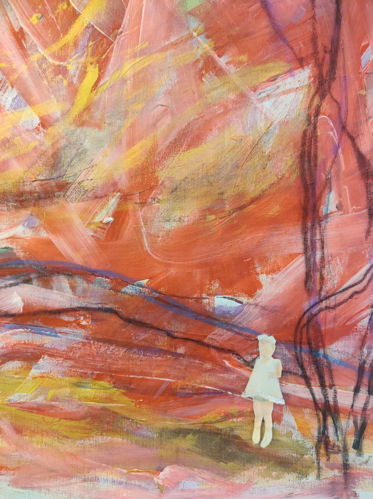 "לפעמים אני בורחת לחצר ילדותי רואה עצמי כילדה שהייתי ולאן צמחתי. אני יוצרת עבודות שעוסקות בעולם הפנימי כמנוף לדרך חיים משמעותית". (ציטוט מטקסט התערוכה).