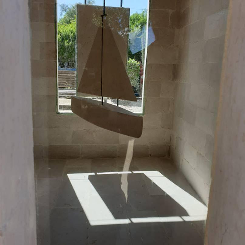הפסל פועל באנלוגיה לשעון שמש כאשר האותיות מוקרנות על גבי הרצפה והקירות כאותיות אור בהתאם לתנועת השמש מזריחה עד שקיעה. האות והחלון הופכים לצוהר של אור אל-חומרי המוקרן גם על הסירה התלויה במרכז החלל הפנימי של המבנה. לסירה משמעות סמלית, כמסע אל מחוזות חדשים אל ה'אין סוף', אל הנשגב. בשלב מסוים מתחברות האותיות של ה-ש וה-ם ויוצרות את המושג "שם".
