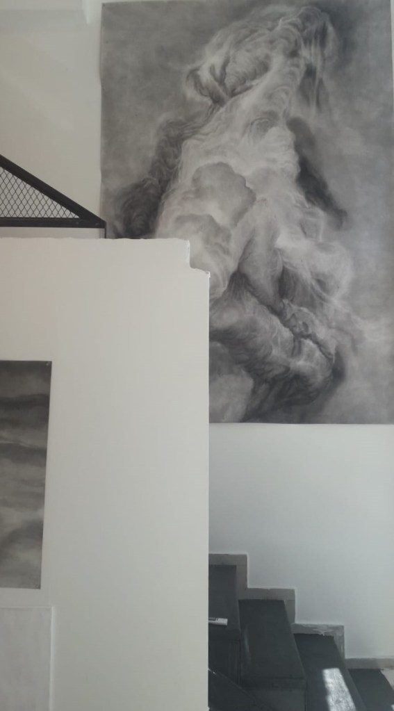העבודה המוצגת בגרם המדרגות מעלה על הדעת ישות כלשהי; דמות קולוסאלית, או שמא דבר אחר, ויש בה מן הבארוק הדרמטי, וכתב יד סוער ומוחצן.
