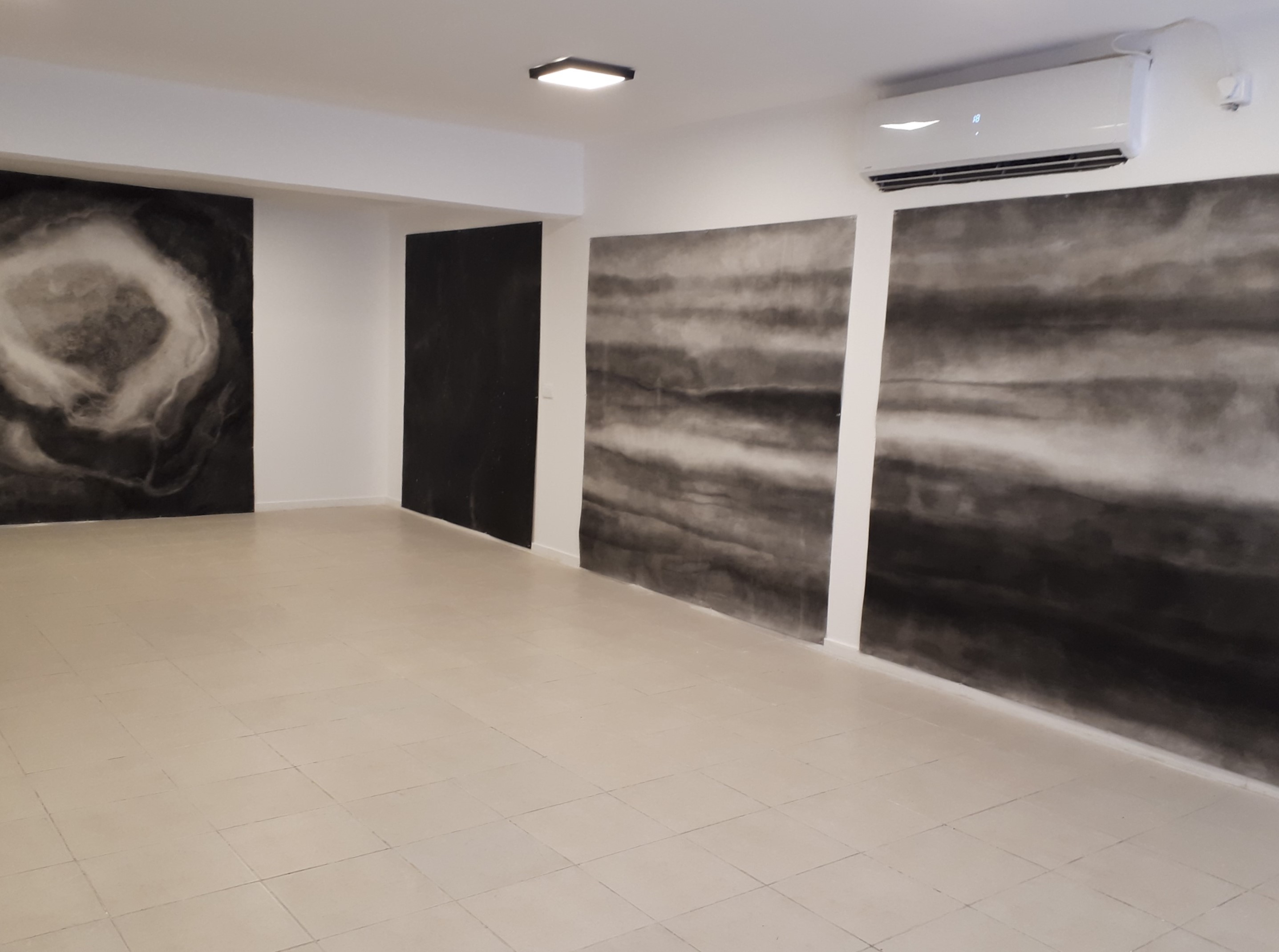 בעבודות המוצגות בחלל הגלריה בן שתי הקומות ייצוגים של היקום על משמעויותיו השונות: מרחבי האין סוף, האור והחושך, הירח והכוכבים שהם חלק מגרמי השמיים, ואפשר גם ייצוג של "החור השחור", "המבקש" להטמיע בתוכו את המתבונן. ובנוסף, עקבות לענפי עצים, קורי עכביש ועוד. שכן כפי שציין הרמח"ל האדם הוא עולם קטן, הבריאה מסודרת בדמות האדם "רק שדרך פעולתו היתה להיות אלה שני נמצאים קשורים זה בזה – העולם והאדם; כי הוא ברא אדם, וברא עולם בברוא אדם".[3]