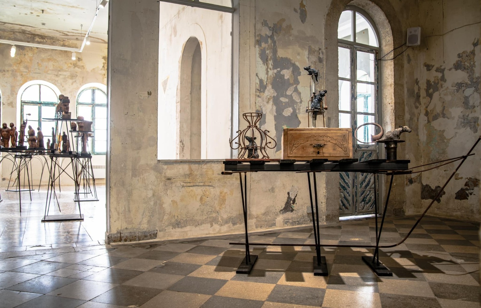 האמן בנה במרכז התערוכה מזח גדול ממדים, עליו הציב את סדרת פסלי הפליטים כעומדים בתור. במעין מצב לימינאלי. בחלל התערוכה המוביל אל התור מוצבות סדרות פסלים קטנות יותר העוסקות במתח שבין הנוסטלגיה של ההגירה ומציאות חיי היום יום: ספינת עכברושים שוקעת, סדרת פסלים ממגהצים שהביאו עמם לארץ מהגרים וסדרת אסמבלאז'ים שנוצרו כהדהוד לנטייתם של מהגרים ופליטים שלא לזרוק חפצים שנעזבו אלא להשתמש בהם מחדש באופן שונה.