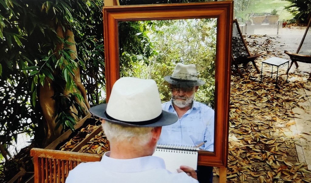 העבודה מעמתת ייצוגים שונים, מה אנו רואים, הדמות של האמן המציג, הממשות שלה, האם הדימוי המוקרן משמש תחליף וייצוג של "האני" של האמן. ייצוג הדמות, ההשתקפות במראה ומושג ה"אני" מקבלים פירושים ופרשנויות מרובים בתיאוריות פסיכולוגיות במהלך 150 השנים האחרונות (לאקאן, פרויד, יונג ואחרים).  בין הפילוסופים שהתייחסו למושגים הנ"ל נמנים: דקארט, קאנט, הוסארל, מרלו-פונטי ואחרים.