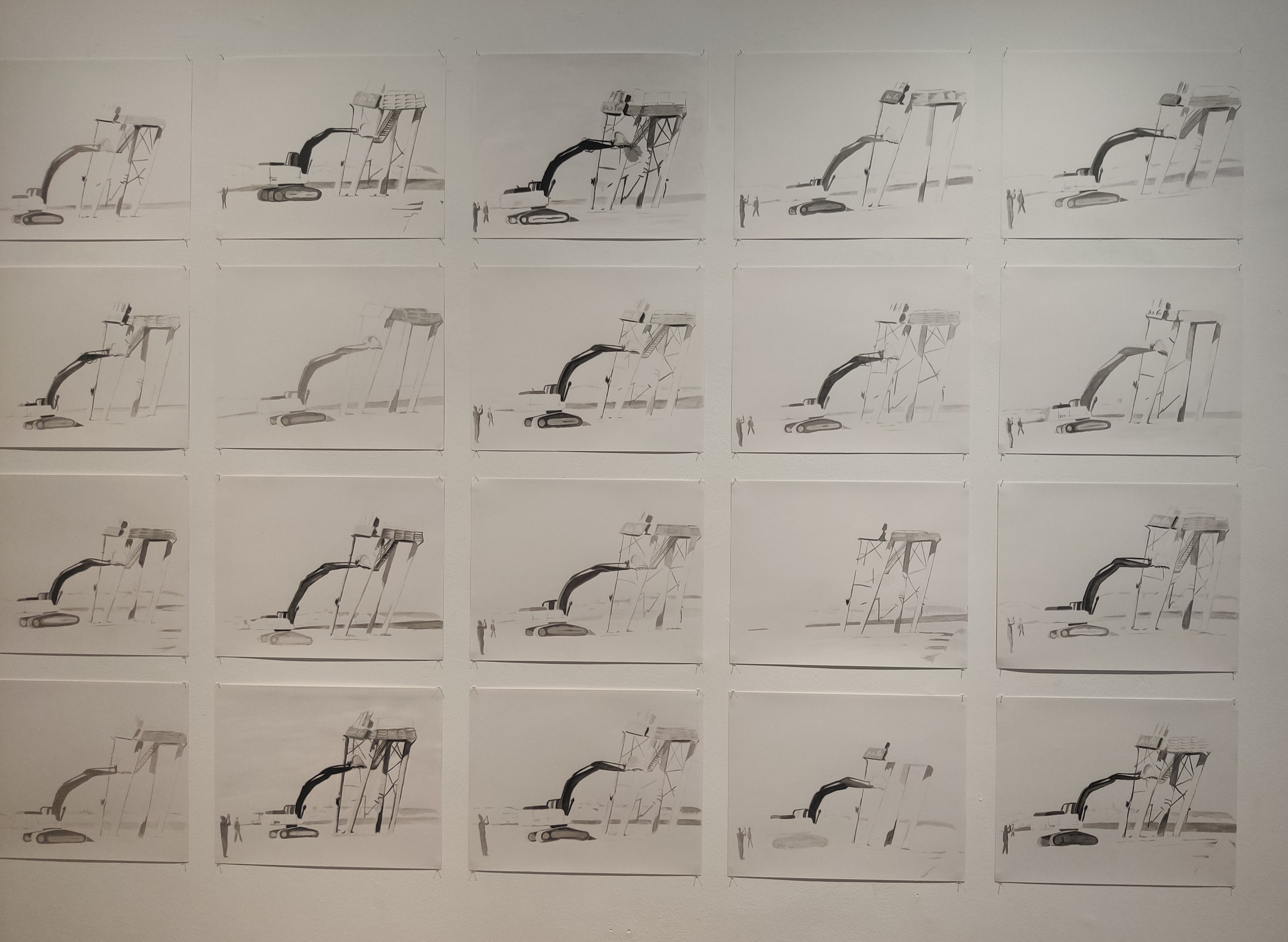 בסדנת ההדפס מוצגת התערוכה "רישום ברצף" באוצרותו של אריק קילמניק. האמנים והאמניות המשתתפים בתערוכה נבחרו על בסיס זיקתם הגרפית להדפס ומתייחסים לנושא הביאנלה השנה, לסדרות או למקבצים המייצרים רצף של עבודות שבאמצעותן מבקש האמן לחקור רעיון ולפתח נושא על פני רישומים מרובים. העיסוק בהכפלה בהדפס שונה מסדרתיות ברישום, שכן במסורת ההדפס הכפלה מדויקת של היצירה המודפסת היא חיונית להשלמת הרצף הממוספר, המכונן סדרה.