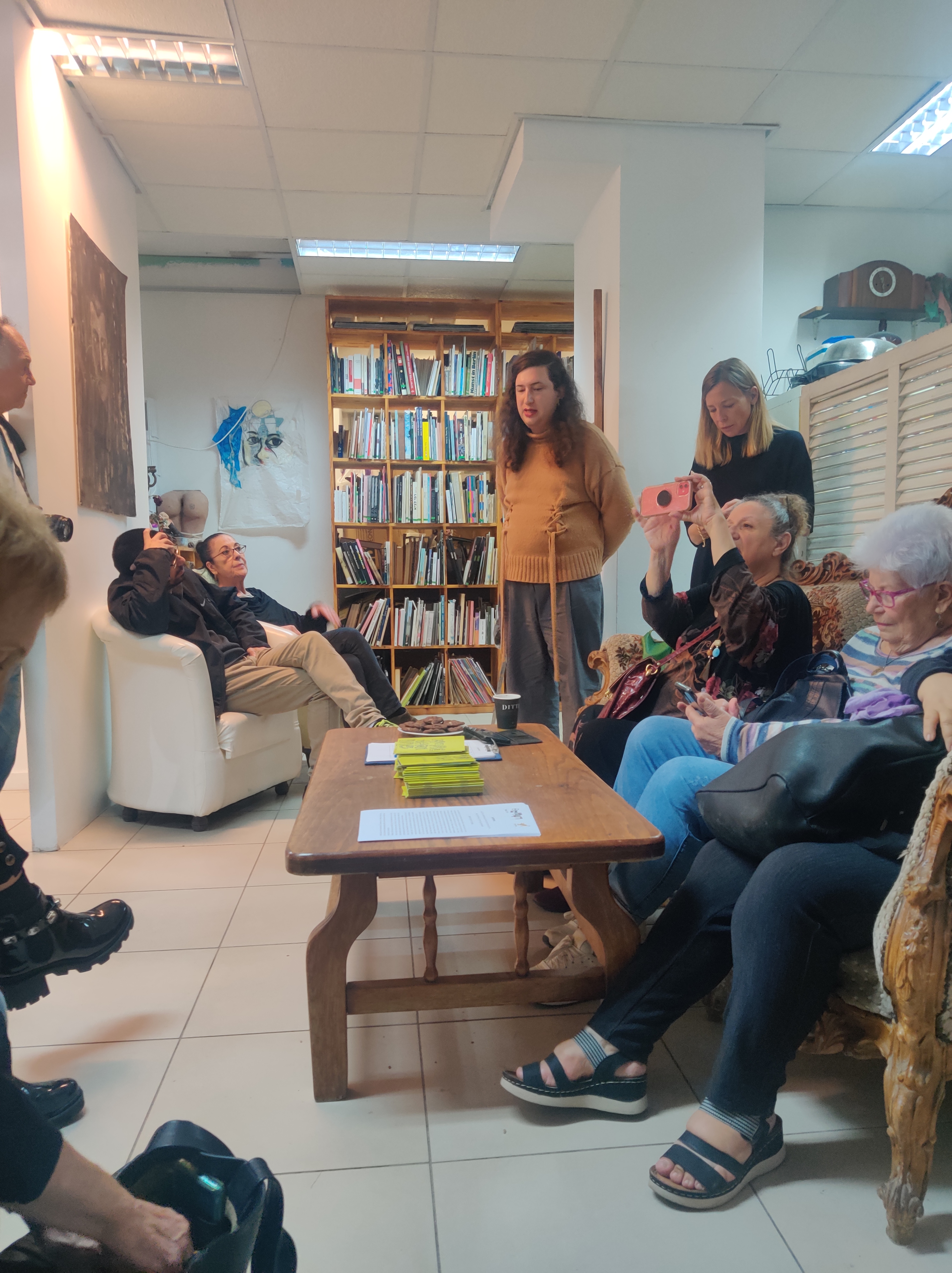 מפגש עם מידד אליהו, המפעל, ברקע עבודה של נטע ליבר שפר