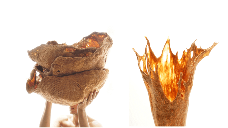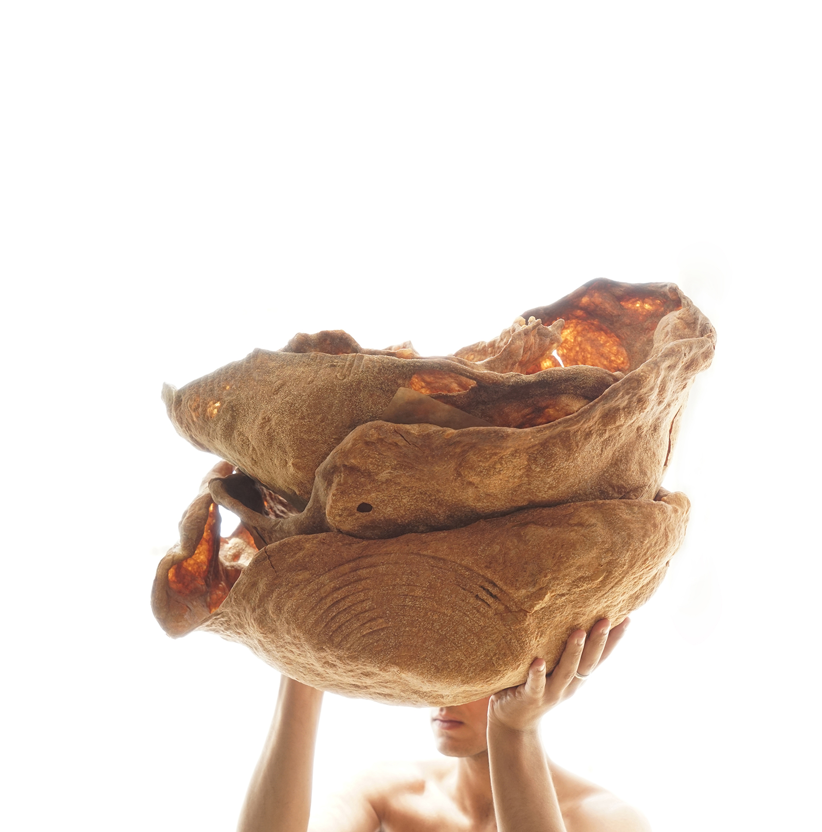 ״בעבודתי זו אני עושה הרחבה בשימוש בבצק בעל היעוד הידוע ובודקת את גבולות החומר הבצקי. כמי שהתמודדה במשך שנים ארוכות עם הפרעות אכילה קשות, הלחם עורר בי השתוקקות וכמיהה גדולה ובו בעת היה איסור גדול. ללחם כוח מחייה, נותן חיים ומשחרר חיים. הייתי נשואה לטוחן שהוא אבי שלושת ילדיי וקמח, בצק ולחם מילאו מקום משמעותי בחיי ובחיי המשפחה. הלחם עבורי מסמל בית, מקום בטוח חום ואהבה.