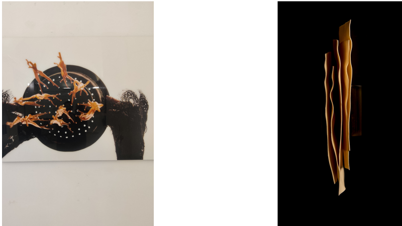 – טליה אסיף ואיתן וכסמן עבודות הצילום של טליה אסיף ואיתן וכסמן עניינן מזון. צילום דפי הפסטה האורכיים המעורר השתאות באשר למהותו עת מקבל מהות פיסולית. בצילום נוסף המוצג בתערוכה מוצגת מסננת הפוכה שהפכה מצע לאטריות מרקדות, מעין ישות ביומורפית שיש בה את המקצב והתנועה וגם שינוי משמעות בעין המתבוננת. וכך גם כאן עולה סוגת המטמורפוזה ובצידה המבט – מה אנו רואים, ומה עיננו ומוחנו מפרשים…