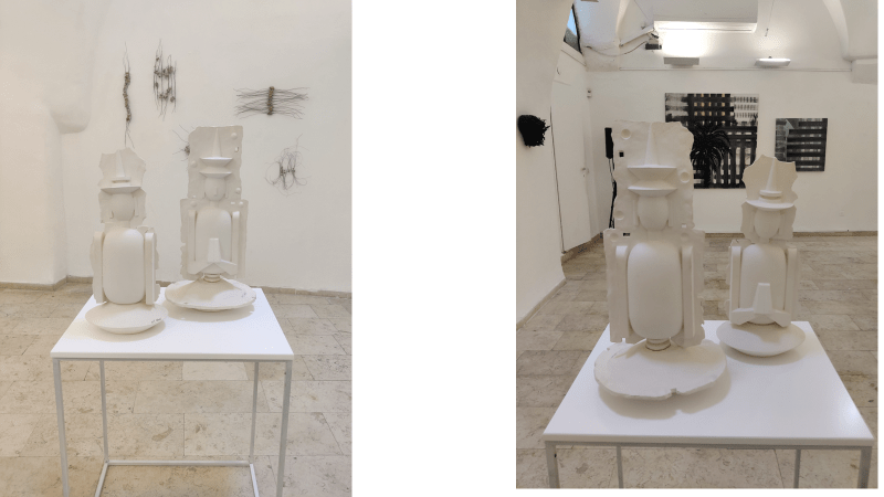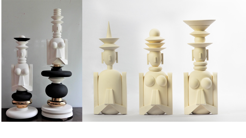 "הפסלים מרפררים לממצאי תרבויות חומריות החל מאשור העתיקה, התרבות הארכאית, לצד השפעות מהפיסול השיבטי האפריקאי, התרבויות האצטקית והמאיה וכמובן המזרח הרחוק. בפסלים אלו מעניקה פרשנות ויזואלית חדשה ומודרנית לדימויים ההולכים ונעלמים מן העולם. בבסיס האובייקטים טמונה פרשנות אישית של האמנית לפסל הבודהה הקלאסי, הנובעת משנים רבות של תרגול בודהיסטי לצד עיסוק בעיצוב ואדריכלות. הבחירה בצבע הלבן, כצבע העיקרי, אשר בתרבויות שונות מקבל משמעויות שונות החל מטוהר, התחלות חדשות, כלולות ועוד.