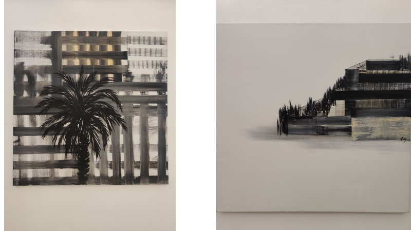 בתערוכה מוצג ציור מסדרת "HOME", בית המאזכר בתים שנבנו בסגנון הארכיטקטורה המודרניסטית של שנות ה-30, 40 ואף מעבר לכך. הציור עשוי במשיכות מכחול רחבות היוצרות מארג של קווים אורכיים ורוחביים עד כדי הגעה לקומפוזיציה שיש בה מן המופשט, ומאזכרים לדידי את ציוריו של משה קופפרמן האהובים עלי, ולצידם דימויי טבע, כגון עצים ושיחים.