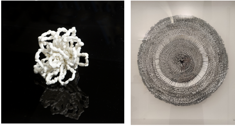 "באובייקטים בא לידי ביטוי דיאלוג בין אמנות פלסטית לעבודת קראפט, וכן מביא לידי ביטוי את מחזוריות עולם המוצרים כפי שמשתקף בעיניה, כמו גם החיבורים בין קטן לגדול, 'אמנות גבוהה ונמוכה', אמנות פלסטית וקראפט, 'אמנות אקולוגית', אמנות נשים ועוד.