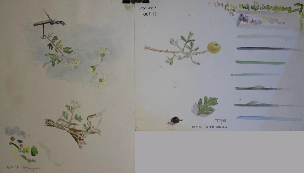 ובנוסף, מציינת לוין: את עבודותיו הפיוטיות והמעודנות בצבעי מים של שמואל חרובי, שתיעד רבות את הטבע הארץ ישראלי ואת הנופים ההולכים ונעלמים, ומאזכרת את הציור הבוטני ביצירתו.