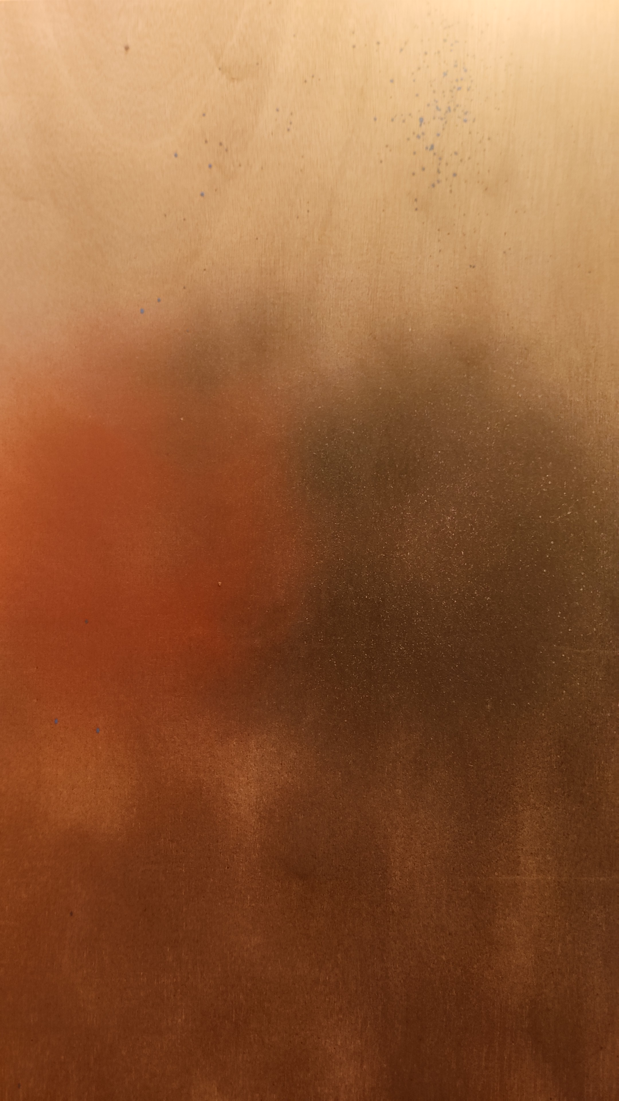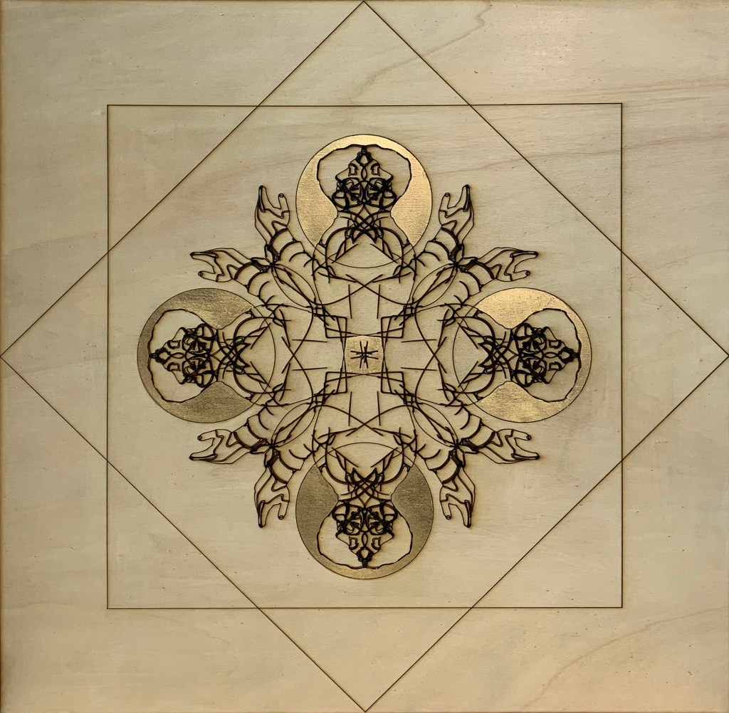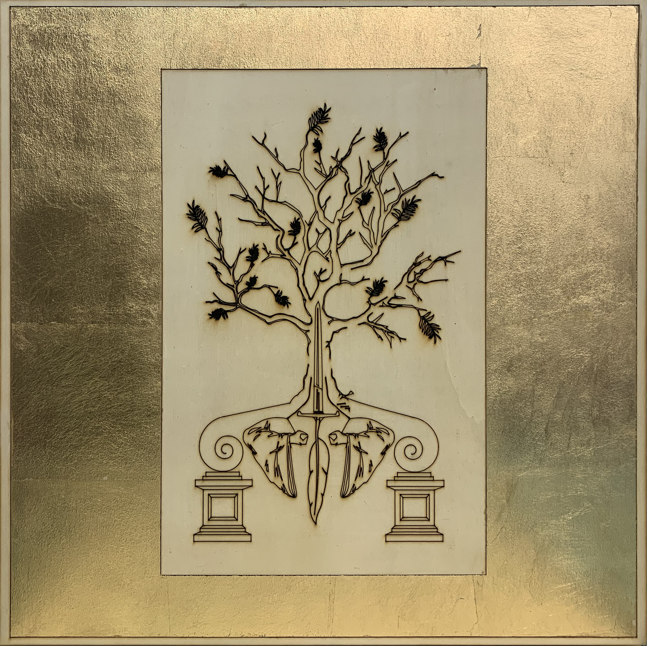 עבודות האמנים בטכניקה מעורבת על מצע עץ, כאשר חטאב מייצג את הפן הפיגורטיבי וקדר את