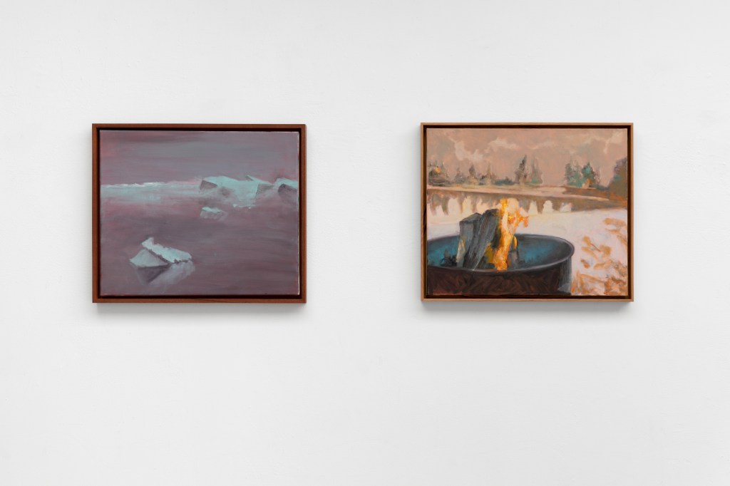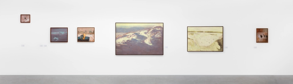 בציורי הנוף המושלגים (חלקם בממדים גדולים המאפשרים כדברי האמנית מרחב נשימה), הרציו הוא הצמצום. הדמויות נדמות לסימנים בנוף. "והחוק", היא מציינת, "שהשלג לא יהיה לבן והשמיים לא יהיו כחולים".