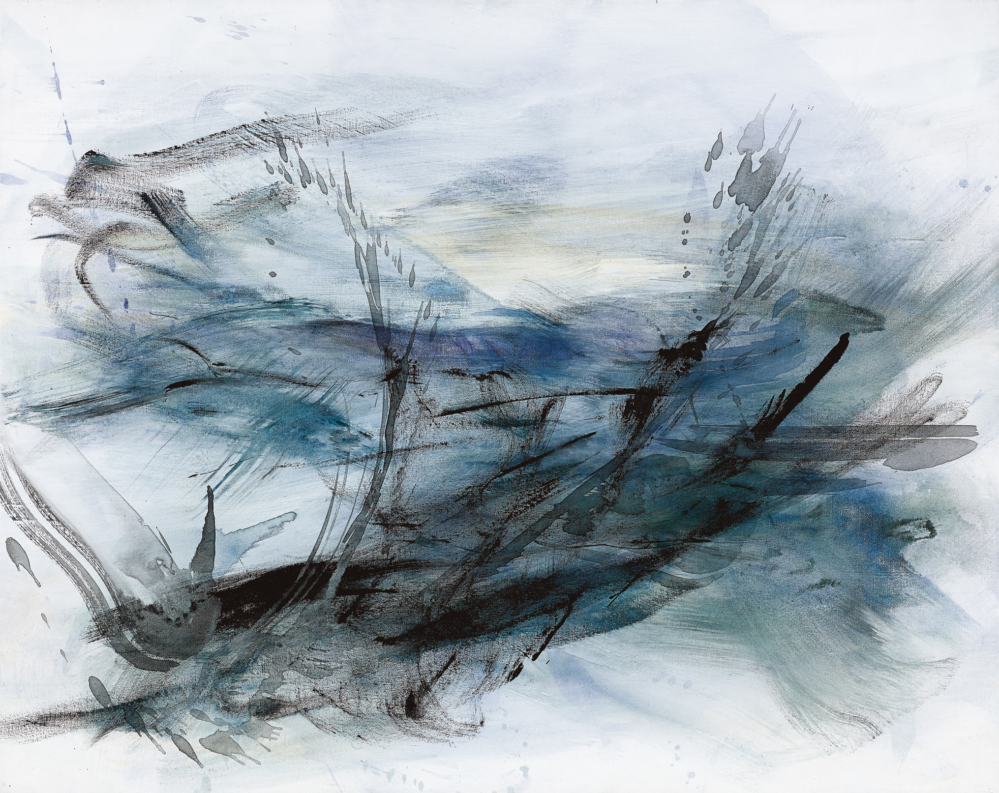 טייכמן: "מחוברת למדיטטיביות – החוויה עוברת דרך הגוף אל המצע, והעבודה נעשית על הרצפה. בעבודות על מצע הבד אני מציירת בצבעי אקריליק מדוללים במיוחד, עד כי נדמים לציור באקוורל".