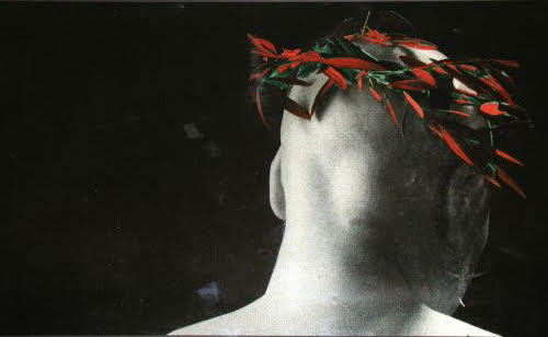 בחלל מוצג צילום ראשה הקרח של האמנית עליו מונח זר של עלי זית, בדומה להילה השמורה על פי רוב לקדושים באיקונות הנוצריות, אך גם באזכור לזרי הניצחון ביוון וברומי הקדומות. הראש מציג את פגיעותו של הגוף ובוגדנותו.