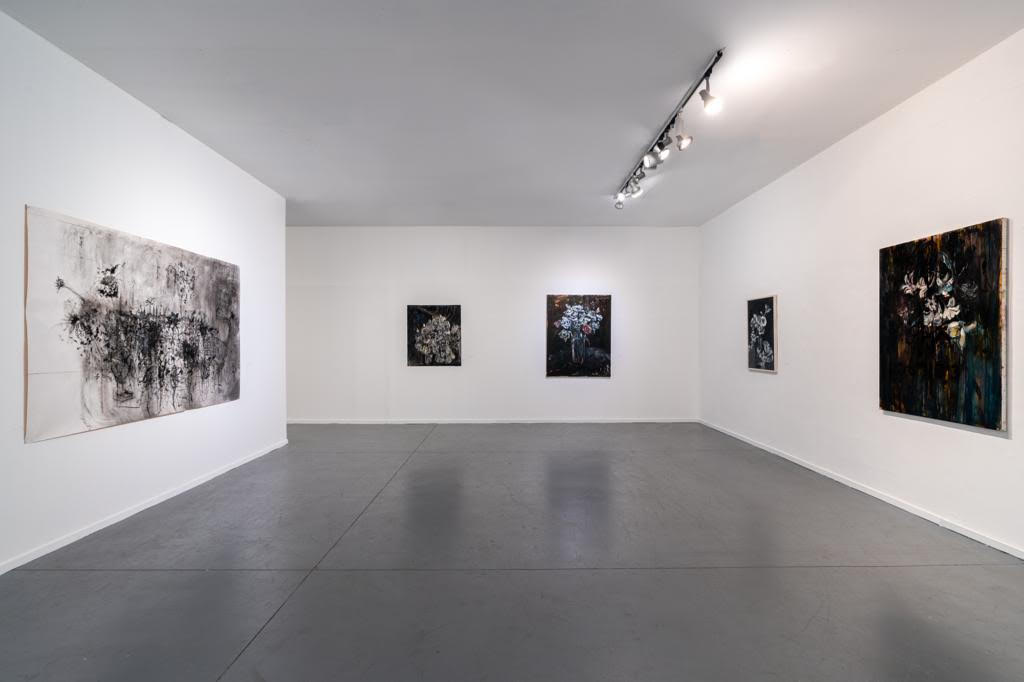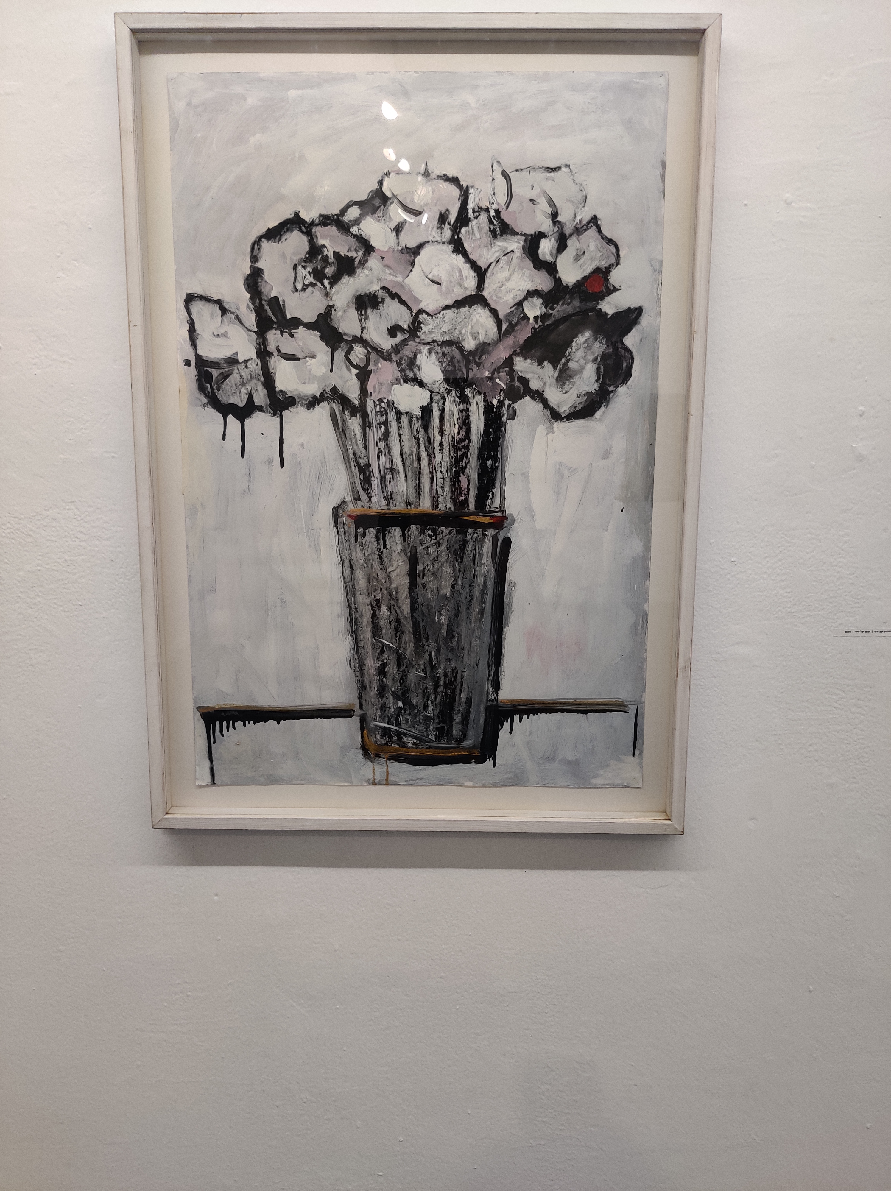 ברכה גיא, פרחים שחורים עם ורד, 2015, שמן על נייר ברכה גיא, 2021, זר, צילום דניאל אנוך