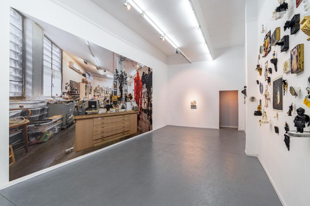 על הסטודיו – הסטודיו כמרחב עשייה – מהמחשבה, הרגש אל העשייה. הסטודיו נוכח בתערוכה בצילום גדול ממדים חמישה מטר על שלושה ומעביר אל הצופים מעט מעשייתה של האמנית. עשייה מרובה, שיש בה מן היופי והנחמה.
