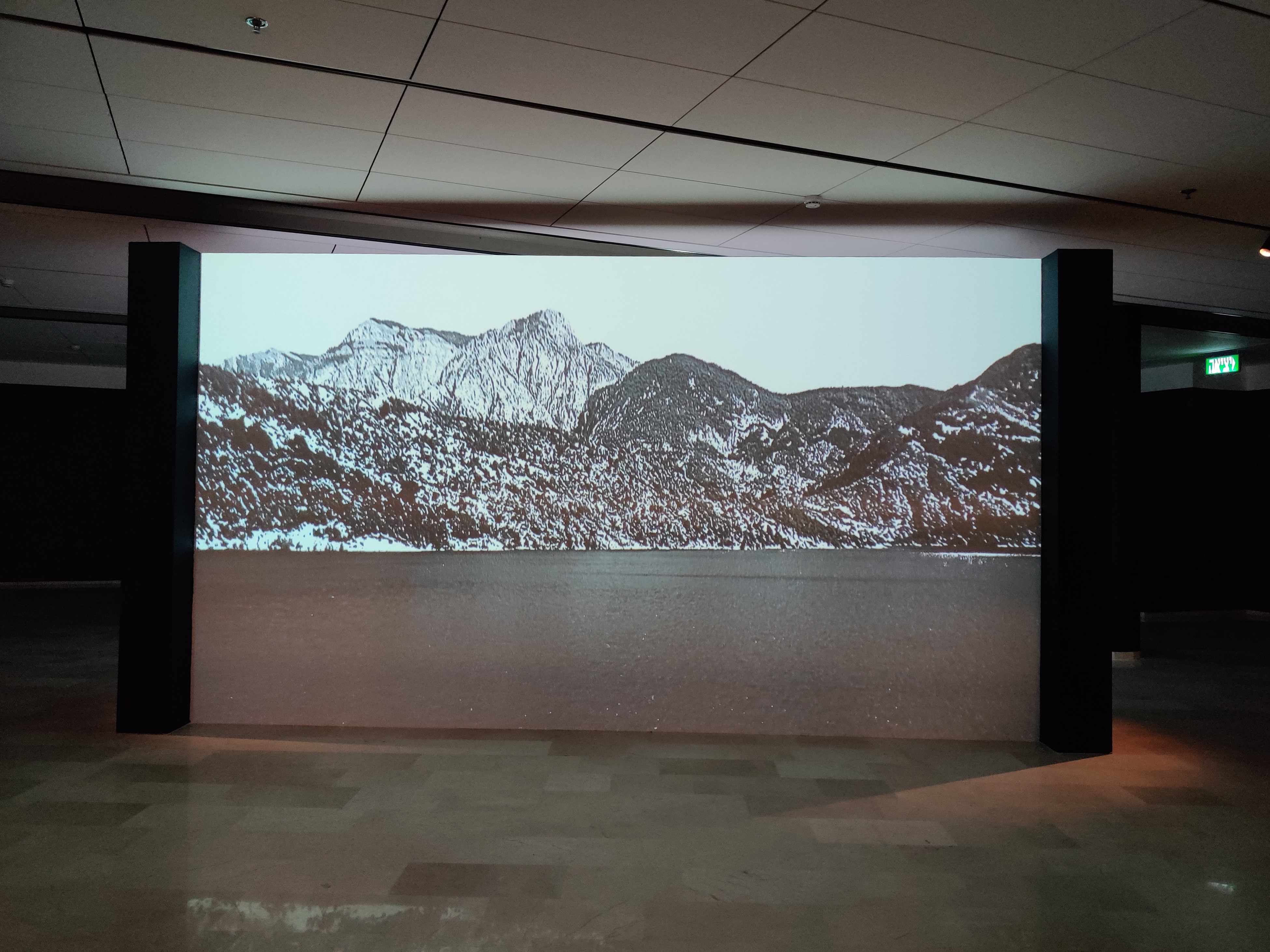 בקומה הראשונה מוצגות שתי עבודות וידיאו ללא סאונד: העבודה של מארק לואיס בה מופיע נוף מרוחק של אונטריו, קנדה המשמש רקע ליצירה. עבודה בה הנוף נע מהפשטה ועד לסצנה המציגה קבוצת מחליקים על הקרח, והעבודה של סילביה אקרמן שעניינה נוף מבודד בהרי אלבניה. הנהר חוצה את הארץ ומחבר בין כפרים נידחים, מנותקים ללא כבישים, ללא עדות לבני אדם.