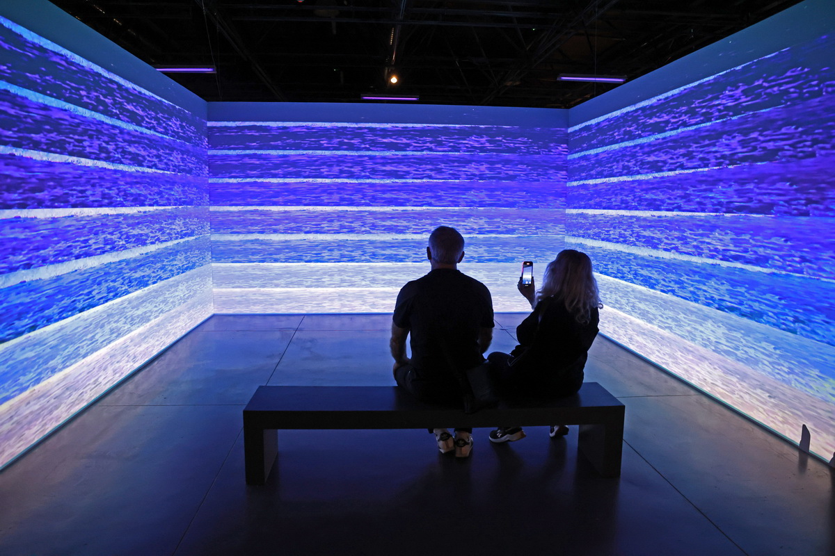 בביתן ניפוח זכוכית במרכז אדם ועמלו במוז"א, מוצג מיצב וידיאו סאונד שנעשה במיוחד לחלל של האמן ויוצר הסאונד רן סלוין. המיצב בנוי משתי הקרנות וסאונד במרחב תצוגה חשוך, והוא חלק מסדרת העבודות גן עדן עכשיו, המשלבת נופים דיגיטליים, אנימציות תלת־ממד, טקסטים, עיבוד AI, סאונד וצילום סטילס. הסדרה מייצגת בעיני סלוין: "ריטואל לא צפוי ומשיכה אל אזורי תודעה חסרי גבולות וסביבות אמורפיות הנמצאות בשינוי מתמיד".
