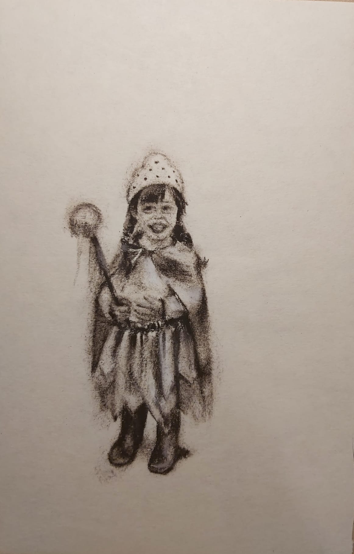 דנה מנור כהן, סופרמן /Superman-פחם על נייר 2023 דנה מנור כהן, אסתר / Esther-פחם על נייר 2023