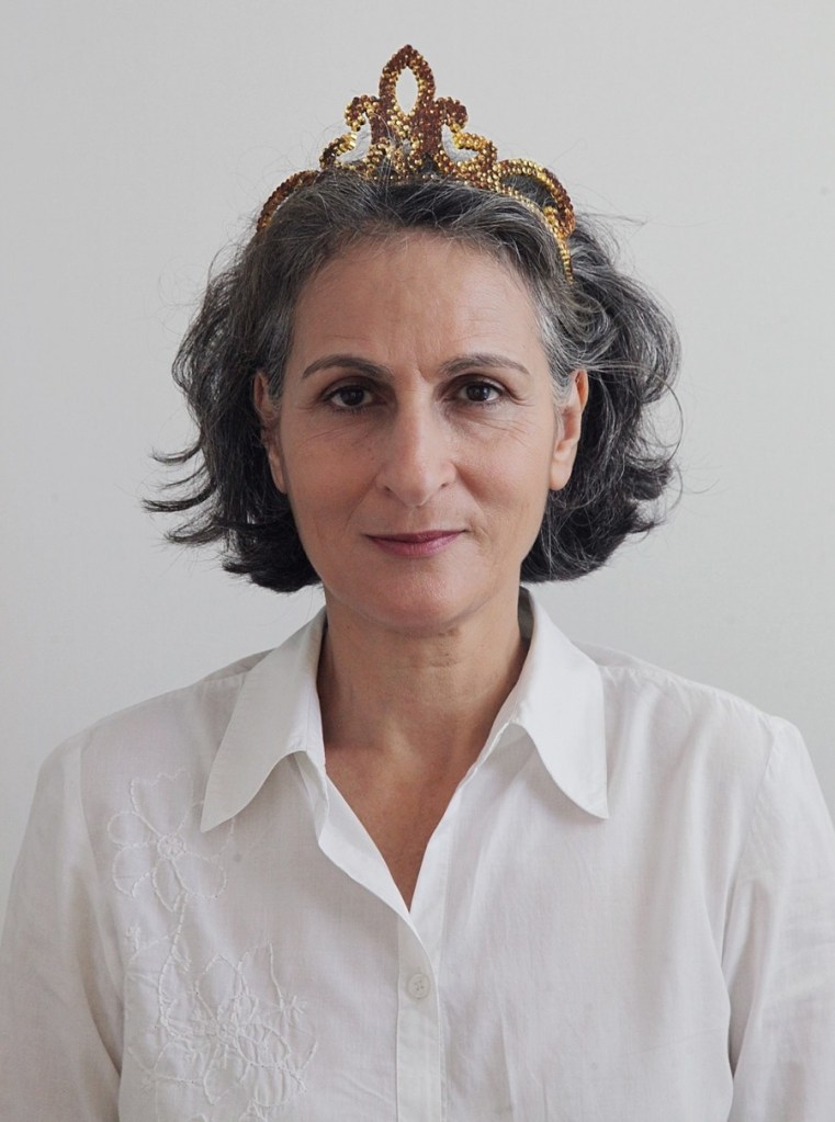 בעבודה שלפנינו האמנית מצולמת לובשת חולצה לבנה ועל ראשה כתר מפלסטיק המדמה כתר ממשי מזהב, ועליו "גידלה" חלודה. את הכתר ענדה לראשה כמלכה.
