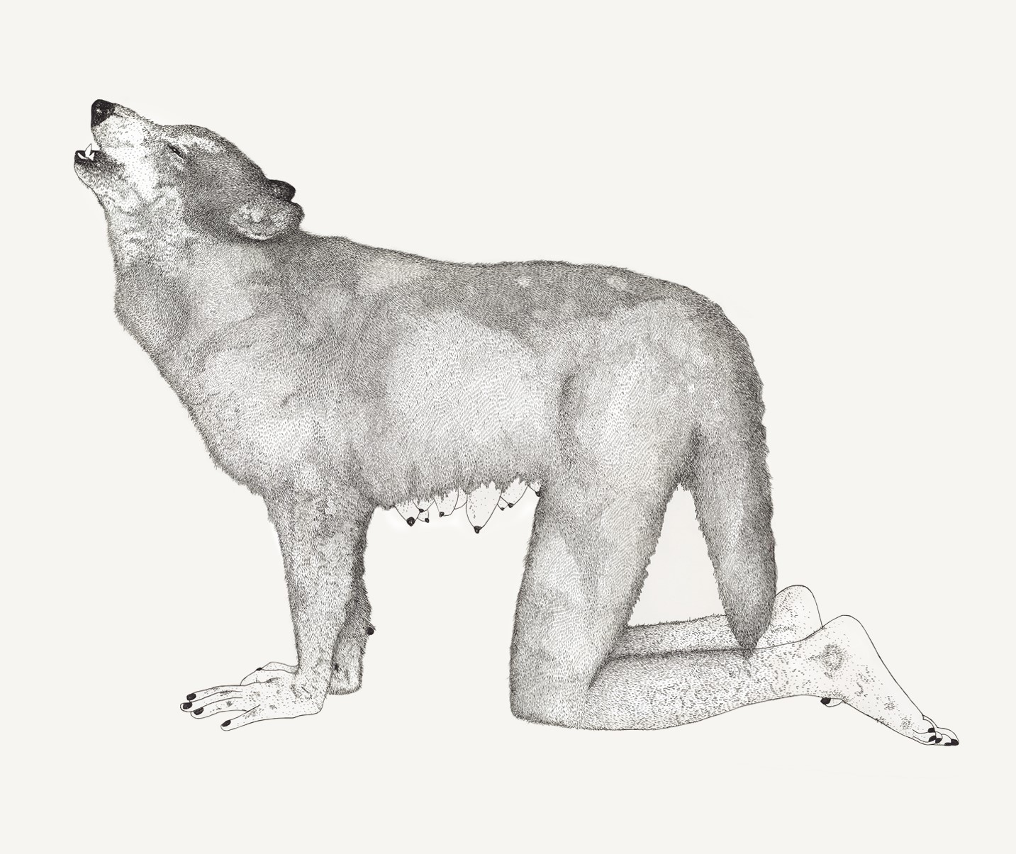 בתערוכה מוצגות עבודות של אמנים/יות והפרשנות שלהם לדימוי הזאב, דימוי מאיים וחידתי על-פי רוב, ולעתים מוצג באופן חומל. האמניות והאמנים המשתתפים: איזבלה וולובניק, טובה פסח, יוסי וקסמן, לילי פישר, לנה זידל, מורן קליגר ומיכל נאמן.