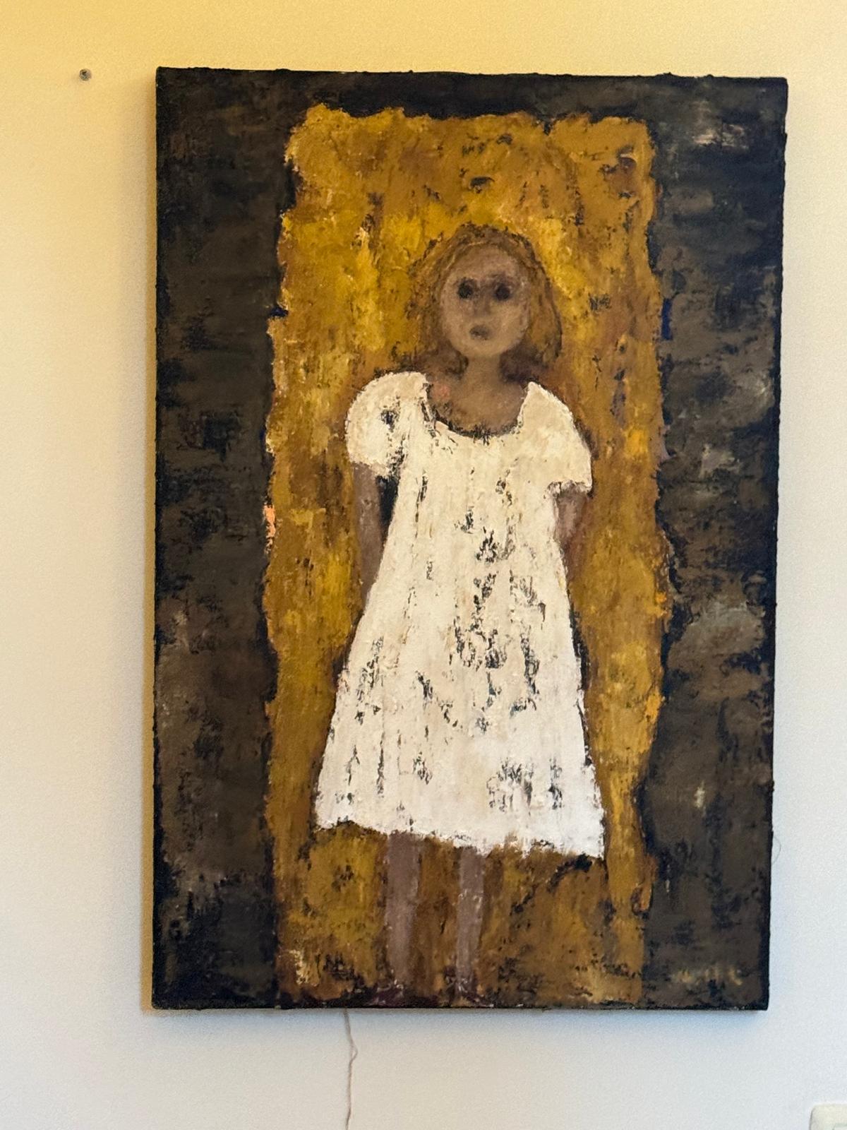 הילדות המוצגות בעבודותיה של מירה חרמוני-לוין מופיעות בתנוחה קפואה והבעתן עצובה, ונושאות עמן געגוע לאחותה המנוחה של האמנית.