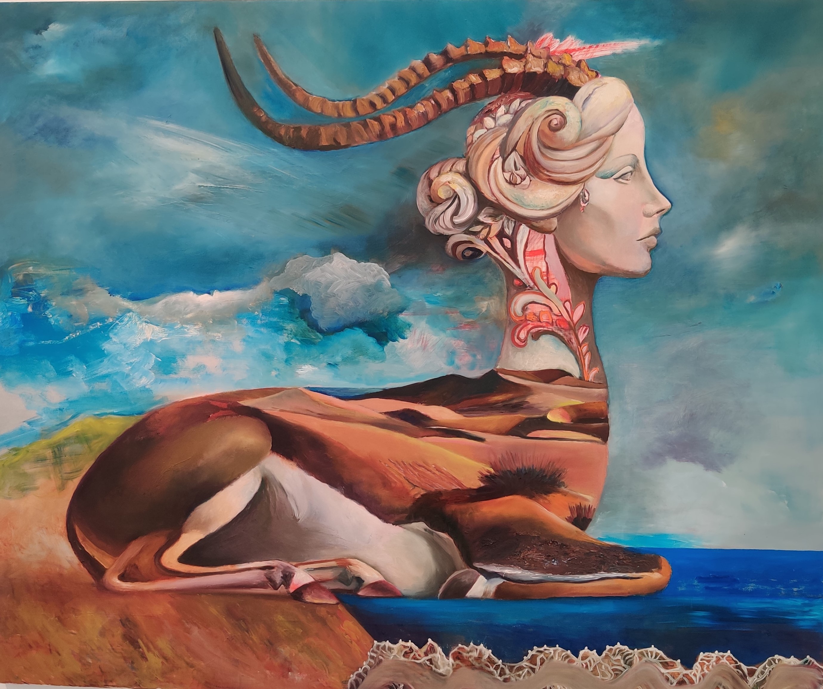 בעבודות יוצרת לסקר עולם דימויים המעלה על הדעת אזכור ליצורים היברידיים מימים עברו, ליוון ורומי הקדומות, לרנסנס האיטלקי ולעבודות אמניות ואמנים בתנועה הסוריאליסטית בעשורים המוקדמים של המאה ה-20. לצדם ייצוגי חיות כגון הצבי המסמל את המדינה "הצבי ישראל על במותיך…".