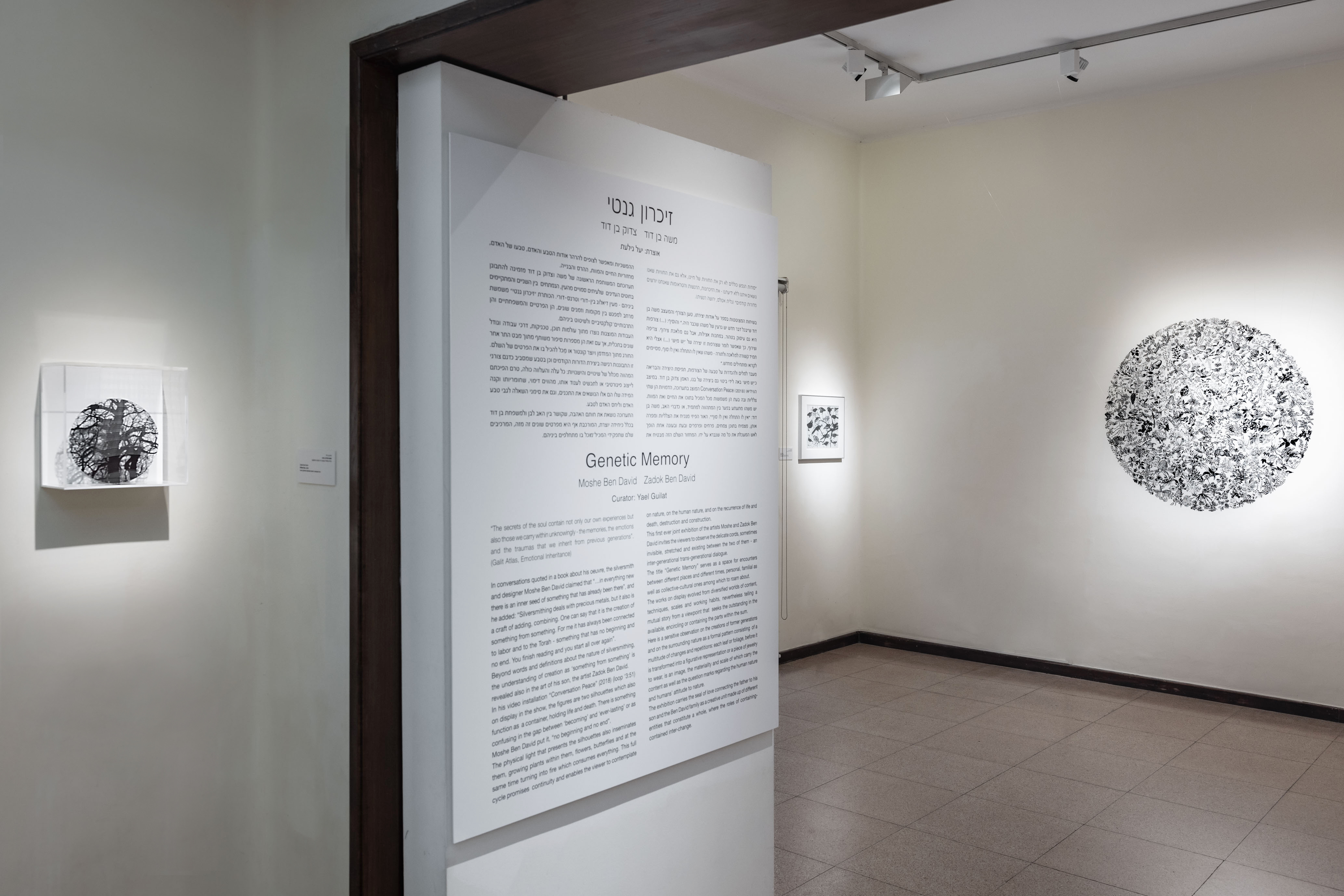 תערוכתם המשותפת הראשונה של היוצרים משה וצדוק בן דוד המוצגת במוזיאון בית ראובן ביוזמת אוצרת המוזיאון כרמלה רובין, מזמינה את הצופים להתבונן בחוטים העדינים, שלעיתים סמויים מן העין, הנמתחים בין השניים, האב והבן, ומתקיימים במעין דיאלוג בין-דורי וטרנס-דורי. הכותרת זיכרון גנטי משמשת מרחב למפגש בין מקומות וזמנים שונים, הפרטיים והמשפחתיים כשם שהתרבותיים-קולקטיביים, ולשיטוט ביניהם ובין העבודות היפות המוצגות בחלל האינטימי של בית ראובן.
