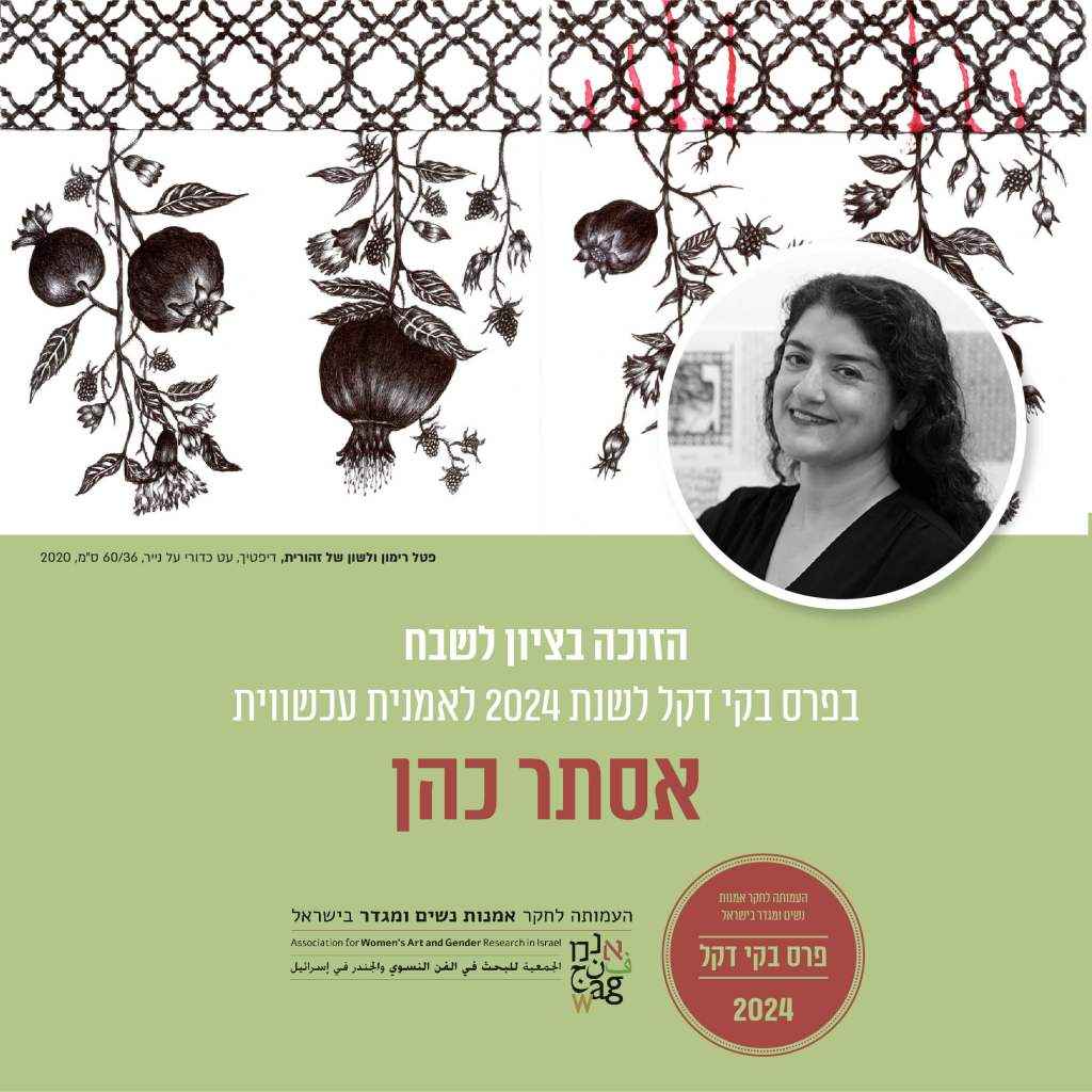 העמותה לחקר אמנות נשים ומגדר בישראל הודיעה על זכייתה של ד"ר ברכה ליכטנברג אטינגר ב"פרס בקי דקל" לאמנית מצטיינת לשנת 2024.