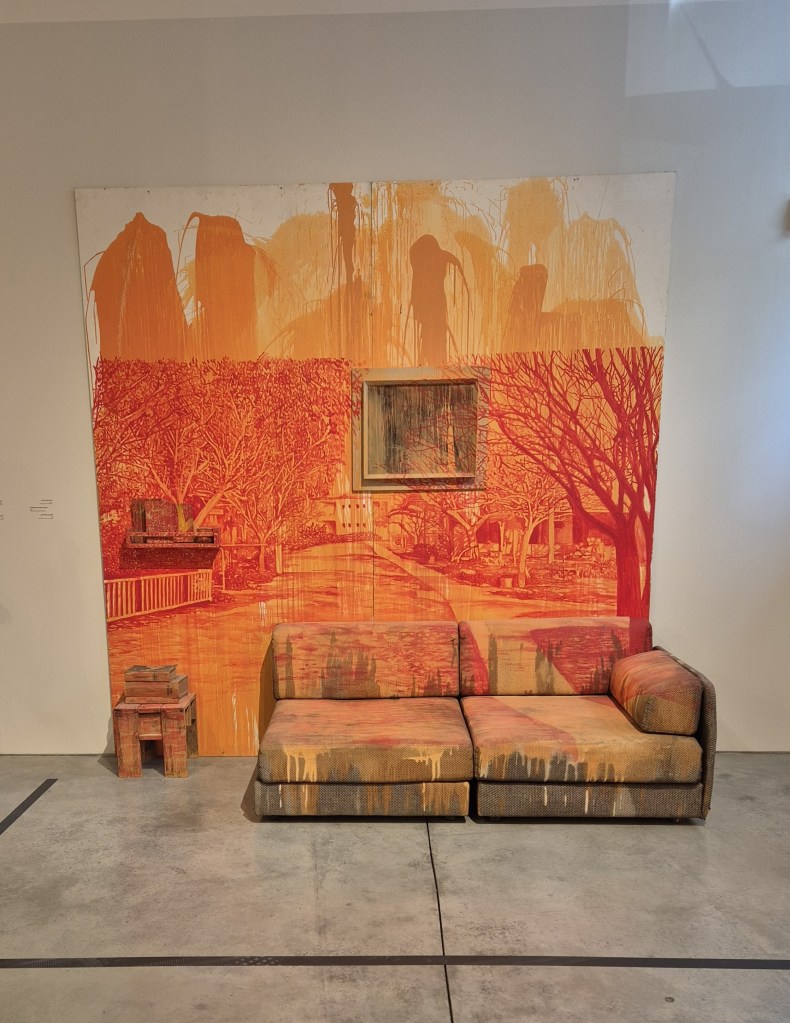 מוראות השבעה באוקטובר מופיעים בחלק מהציורים כעדות – התערוכה מעלה יצירות שחולצו מהסטודיו. קליעי הירי שירו המחבלים פלחו את החלונות וחוררו את העבודות. בתערוכה מוצגות שלוש סדרות של ציורים שנעשו בזמנים נבדלים: הסדרה האדומה, הסדרה הכתומה והסדרה הכחולה.