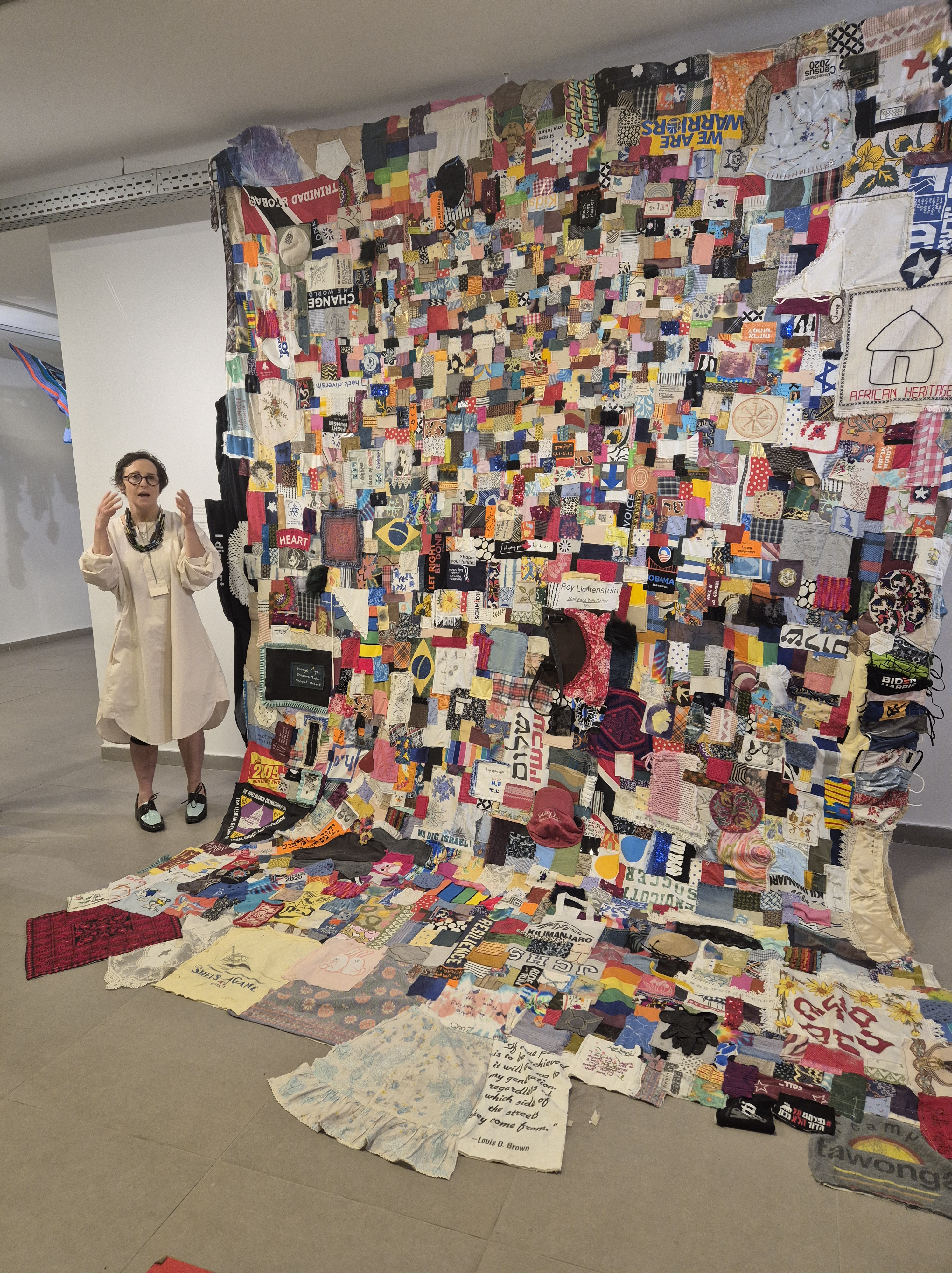 העבודה של קרן טאב "Fabric Of Humanity – Repairing My World", שמיכת טלאים בת כ-1,500 יחידות, נוצרה בתקופת מגפת הקורונה מפיסות בד ומפריטי טקסטיל בעלי משמעות שביקשה וקיבלה מחברים וקרובים. כך כתבה בקטלוג תערוכתה: "הקונספט הזה קשור מאוד למושג 'תיקון עולם' מן היהדות. העבודה שלי 'מארג האנושות' הפכה לכמוסת זמן חיה ונושמת של תקווה, אהבה ואופטימיות. בסטודיו שלי הרגשתי כאילו אני מאחה בידיי את השסעים העמוקים הקיימים בעולמנו. תפרתי מבעד לכאב, לפגיעות ולפילוג, שהם מתחלואיה של ארצות הברית בעשורים האחרונים(…)".[1] לדבריה, העבודה היא מעין דיוקן אישי.
