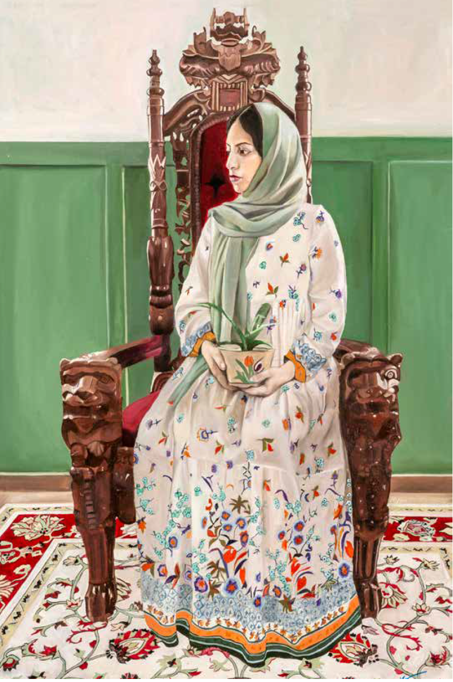 נהונד ג'בארין מדמה בציוריה חצאיות מוטלאות על ידי חיבור של פיסות בד עם מוטיבים צמחיים ססגוניים לפיסות בד חלקות או עם מוטיבים גאומטריים עדינים. כל אלה משתלבים למלאכת מחשבת עם פרח הח'ובייזה הסגלגל ביד האמנית.