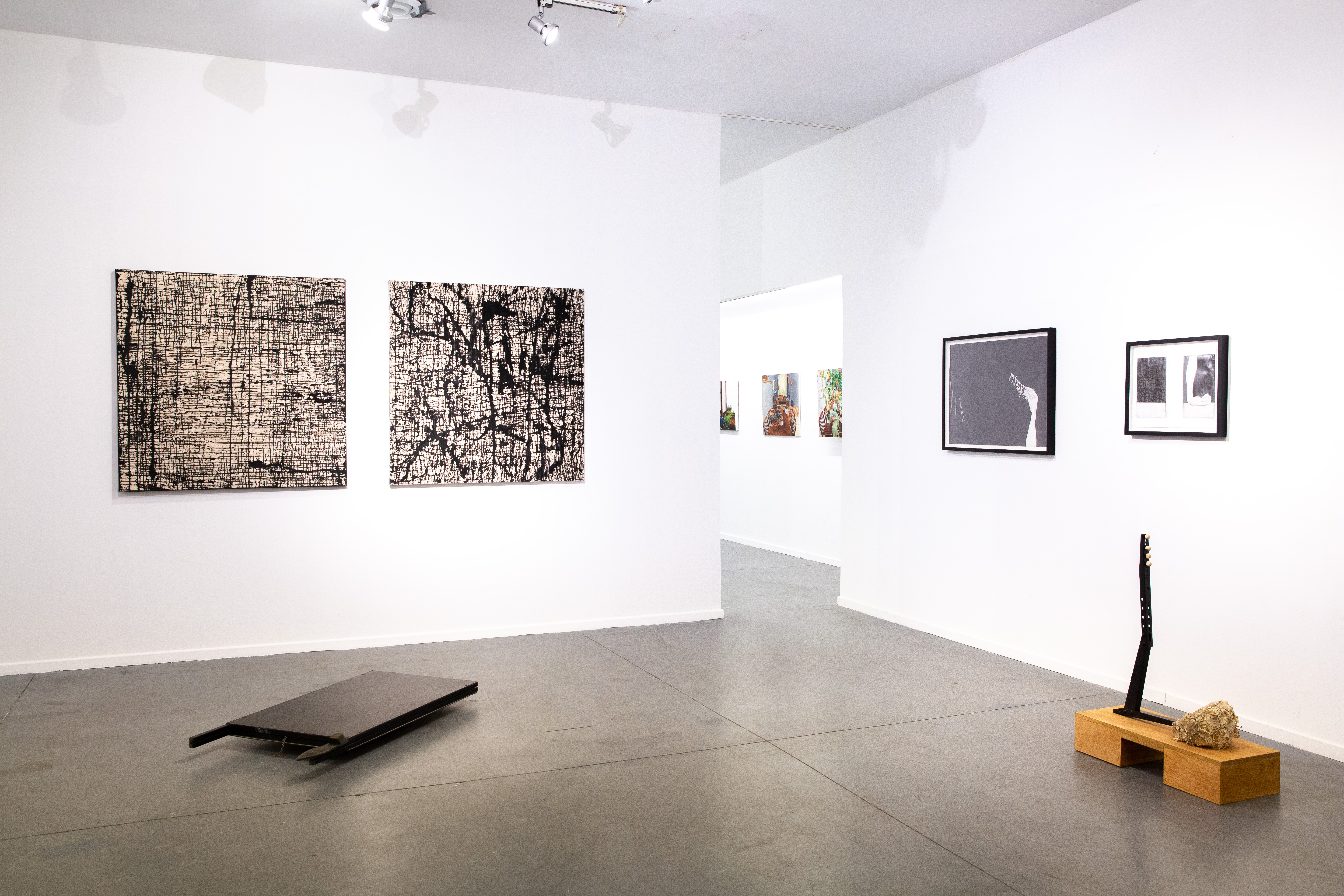 בעבודות המוצגות בתערוכה נוכח באחת מהן הגריד הנשלט ע"י הקו הדק, שאפשר ומאזכר עקבות לעבודות של מונדריאן. בעבודה השנייה, מנגד, נוכח הקו המסיבי, האקספרסיבי, בעל הנוכחות והנוטה לכתמיות, ויוצר תנועה המובילה את עין המתבונן בעקבותיו.